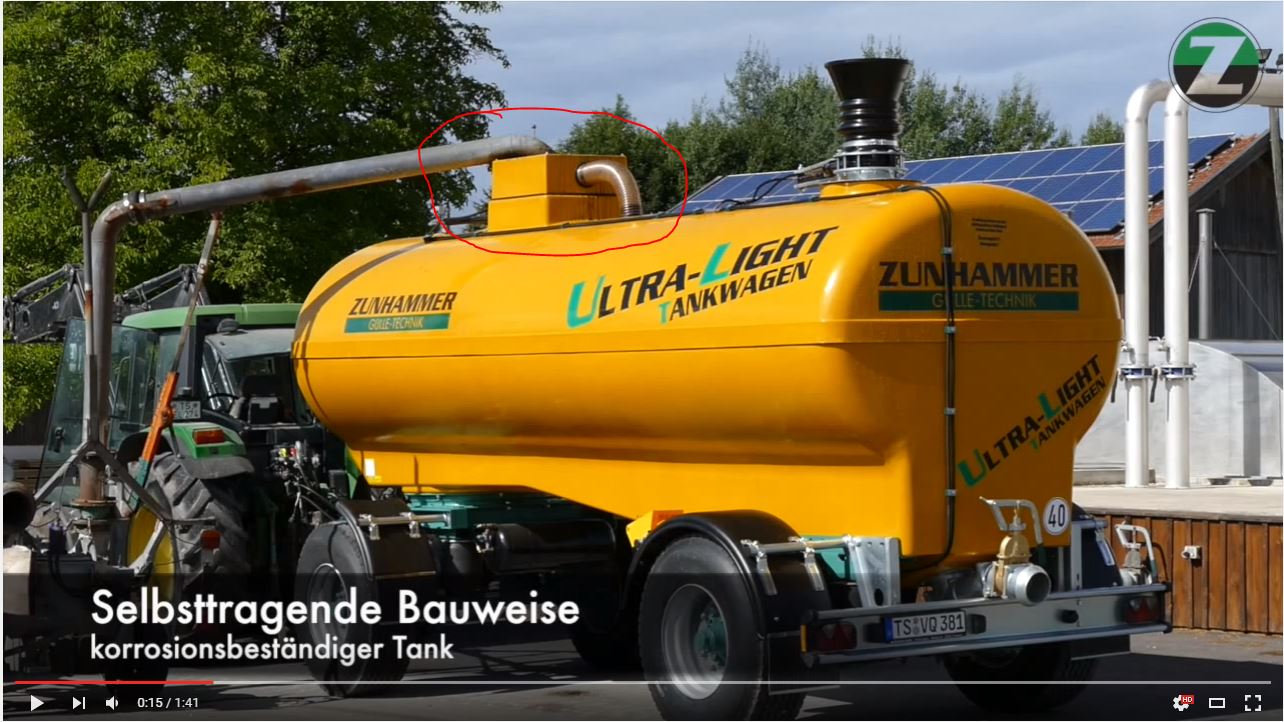 steht was von Einfüllschieber ich denke das da oben weiter unten ein Schieber ist zum öfffen und schleißen der Öffnung und das da als Spritzschutz da eben so ein Rand rund herum gebaut ist und die Gülle die da wegspitzt läuft durch den Schlauch in das Fass so denke ich das mal