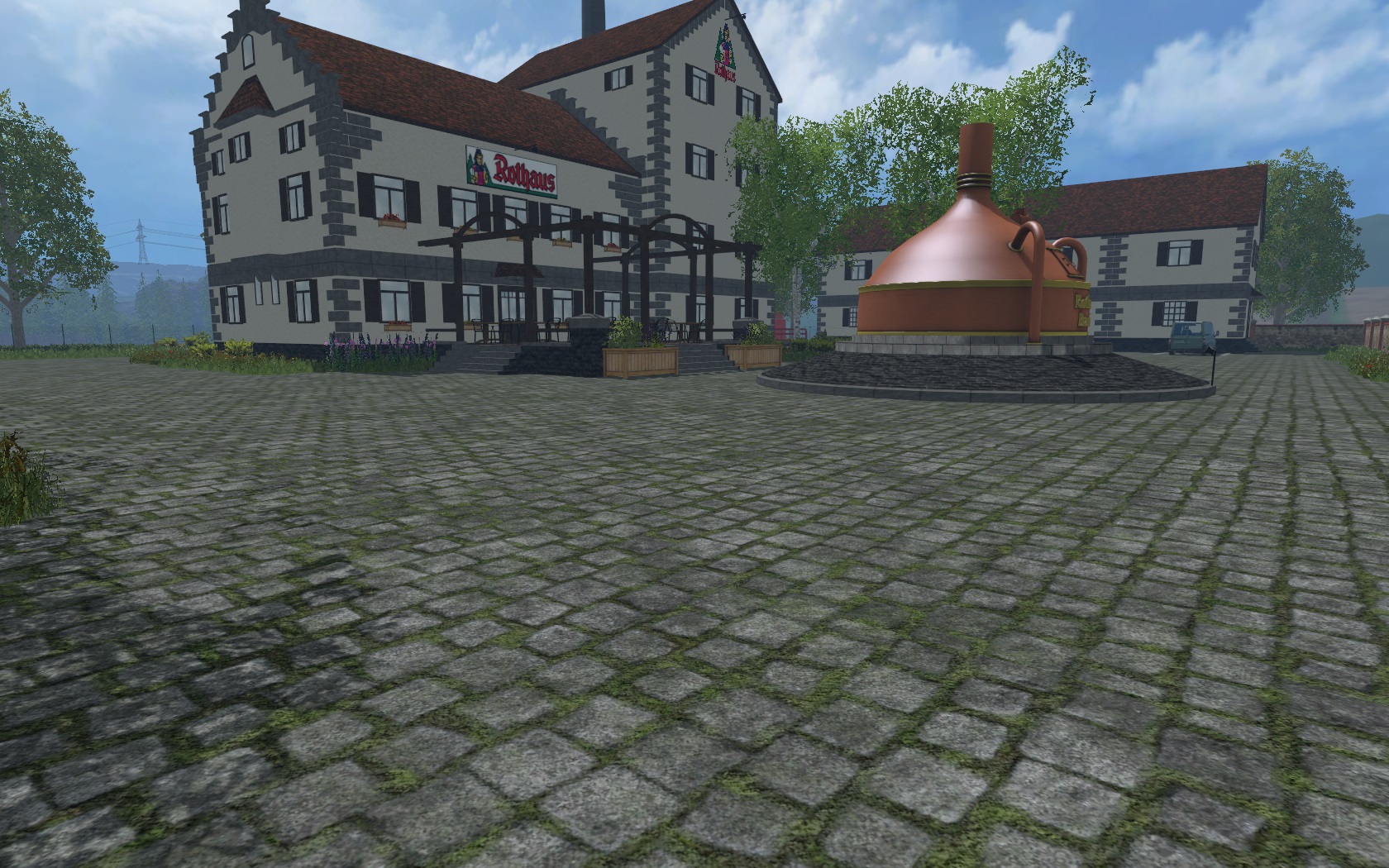 Ich habe erfolgreich das Terrain, das Straßennetz und schon Teile des Hofes rüber geholt.
