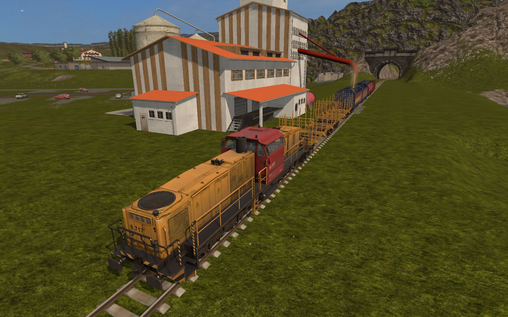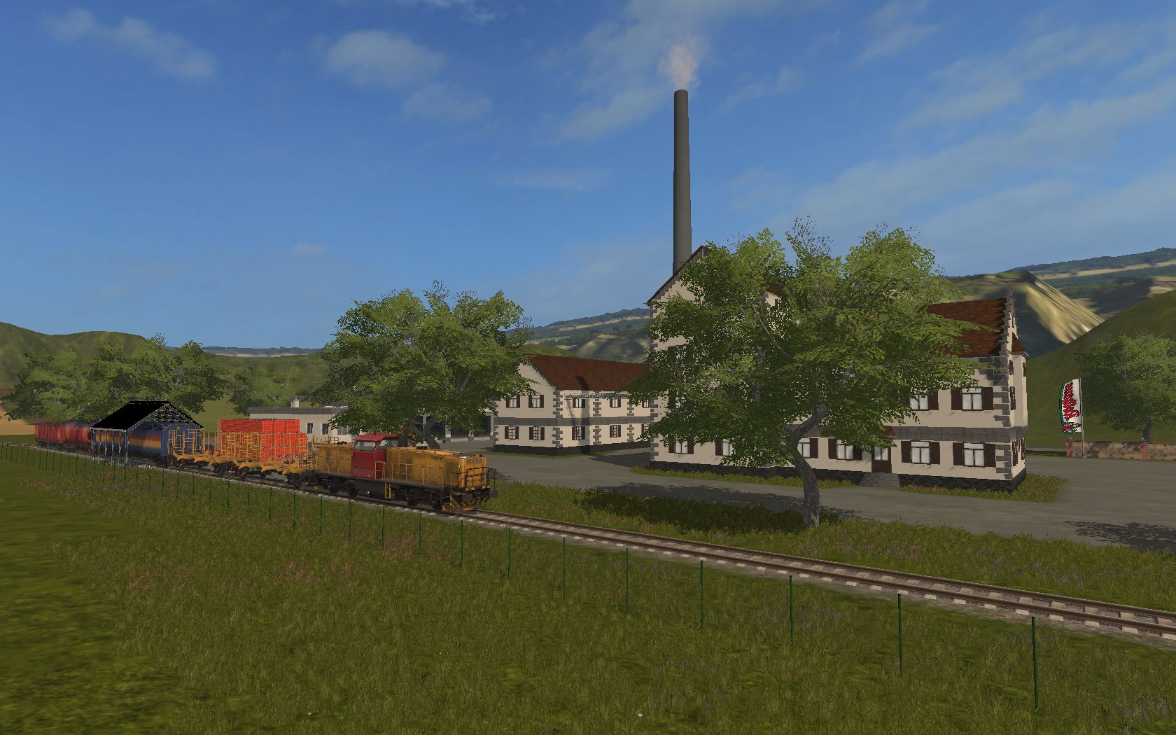 Dann habe ich noch einen der beiden Züge aus der Standardmap komplett neu verbaut, dazu noch eine Ladestation um den Zug zu beladen und eine Abladestation bei der Brauerei.