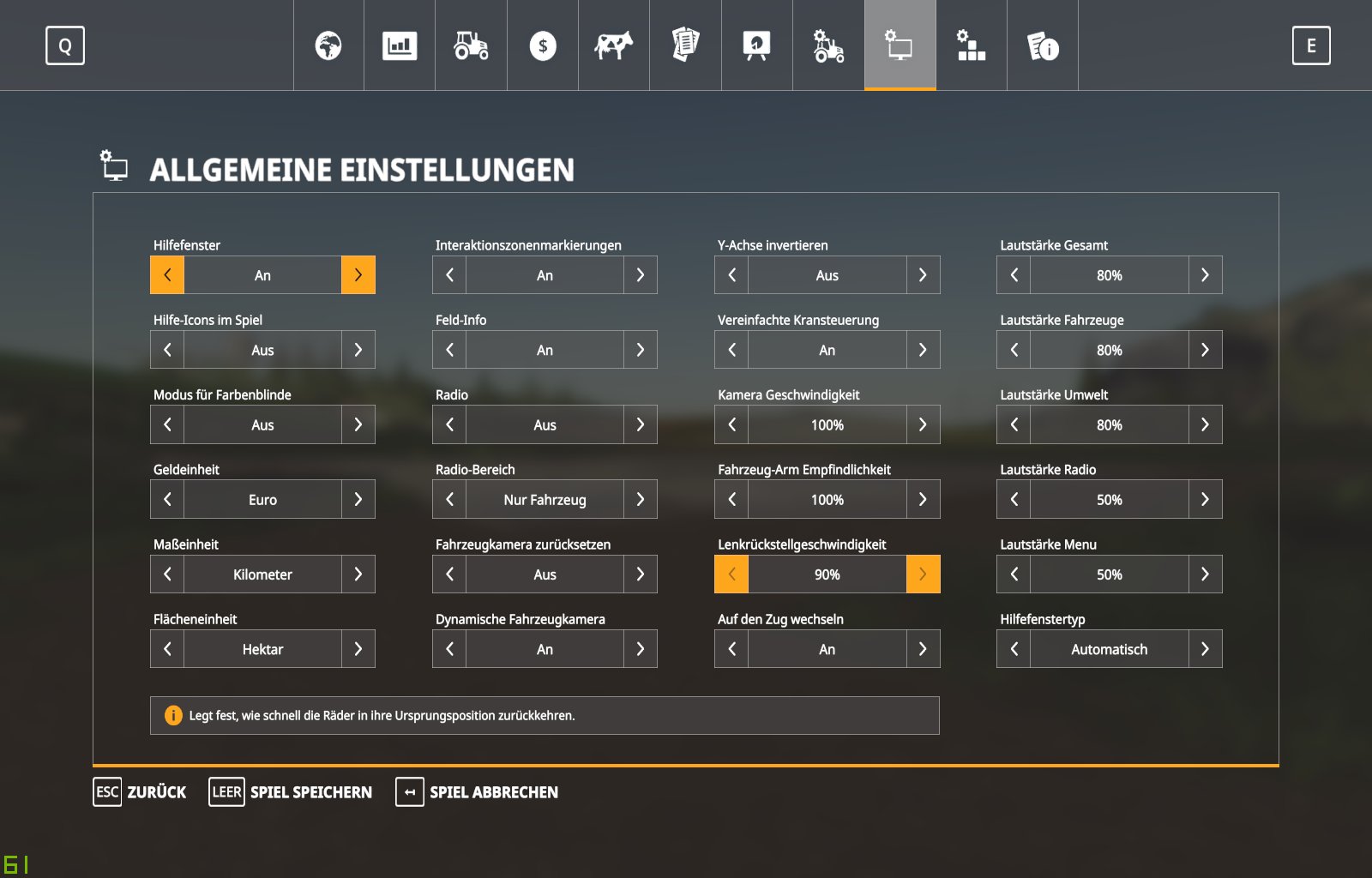 ich hab das bei mir auf 90 % stehen dann lenkt es langsam zurück und bei 100 % ist es so wie bei LS 17 Taste loslassen und es ist zurückgelenkt ![]()