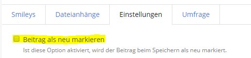 Beiträge können nun beim Bearbeiten wieder als neu markiert werden, indem man die entsprechende Option im Tab "Einstellungen" aktiviert.