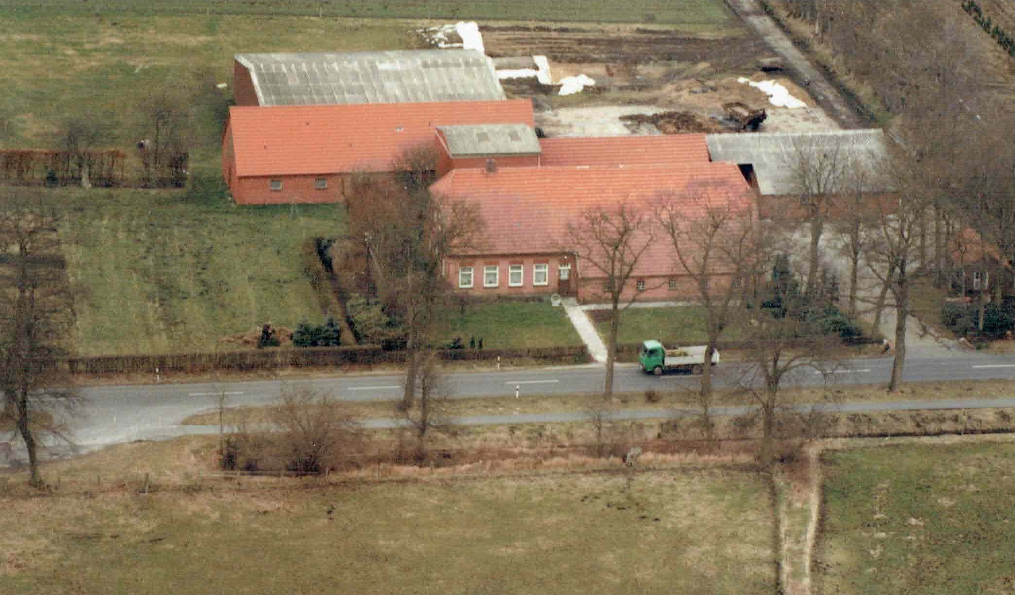 Bild 1: Wohntrakt befindet sich im Vordergrund rechts davon schließt sich Diele mit Stall, Futterkammer und Heuboden an