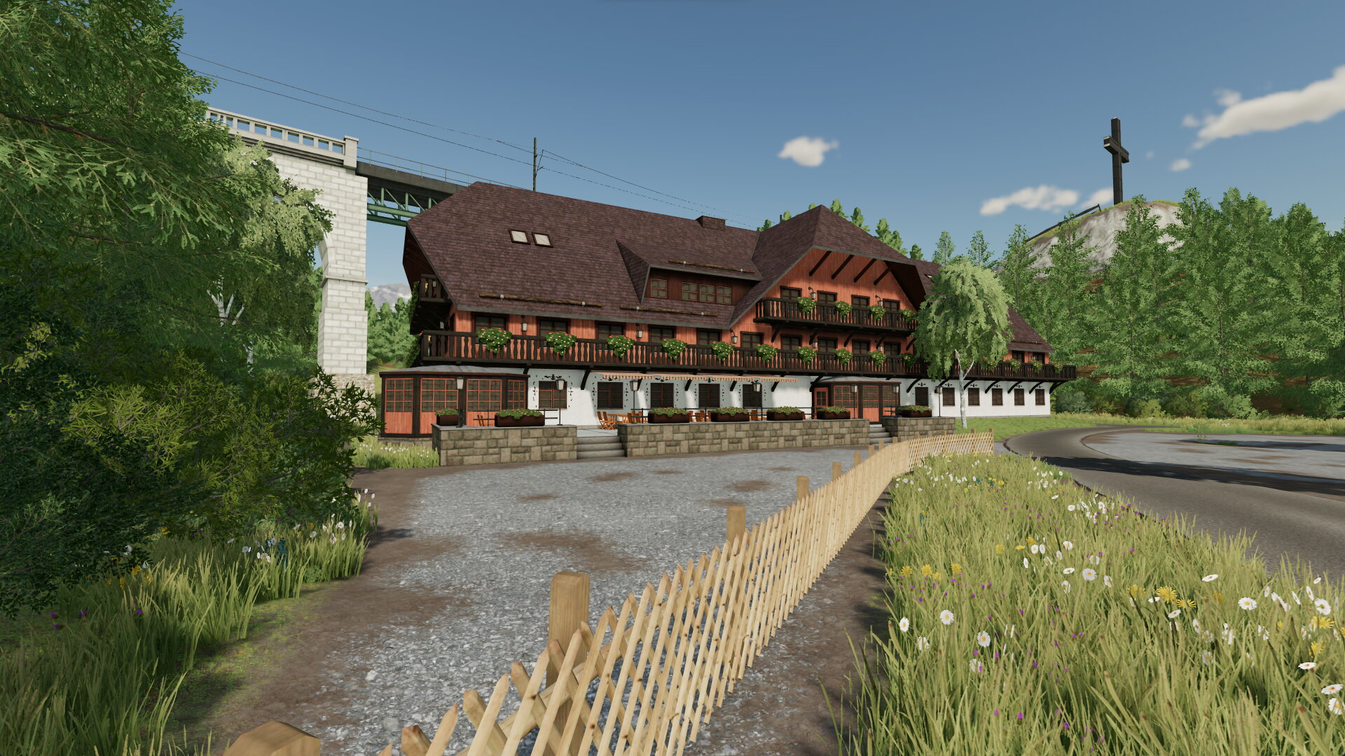 Die Map spielt offiziell im Schwarzwald ist aber reine Fantasie und könnte in jedem Bereich der Voralpen spielen. Zielgruppe sind Spieler, die entschleunigen wollen, z.B. Jungtimer gerne fahren und kleine Felder mögen. Also für Spieler, die nicht viel Zeit haben, aber gerne 2-3 Felder in der vorhandenen Zeit gemüdlich abarbeiten wollen.