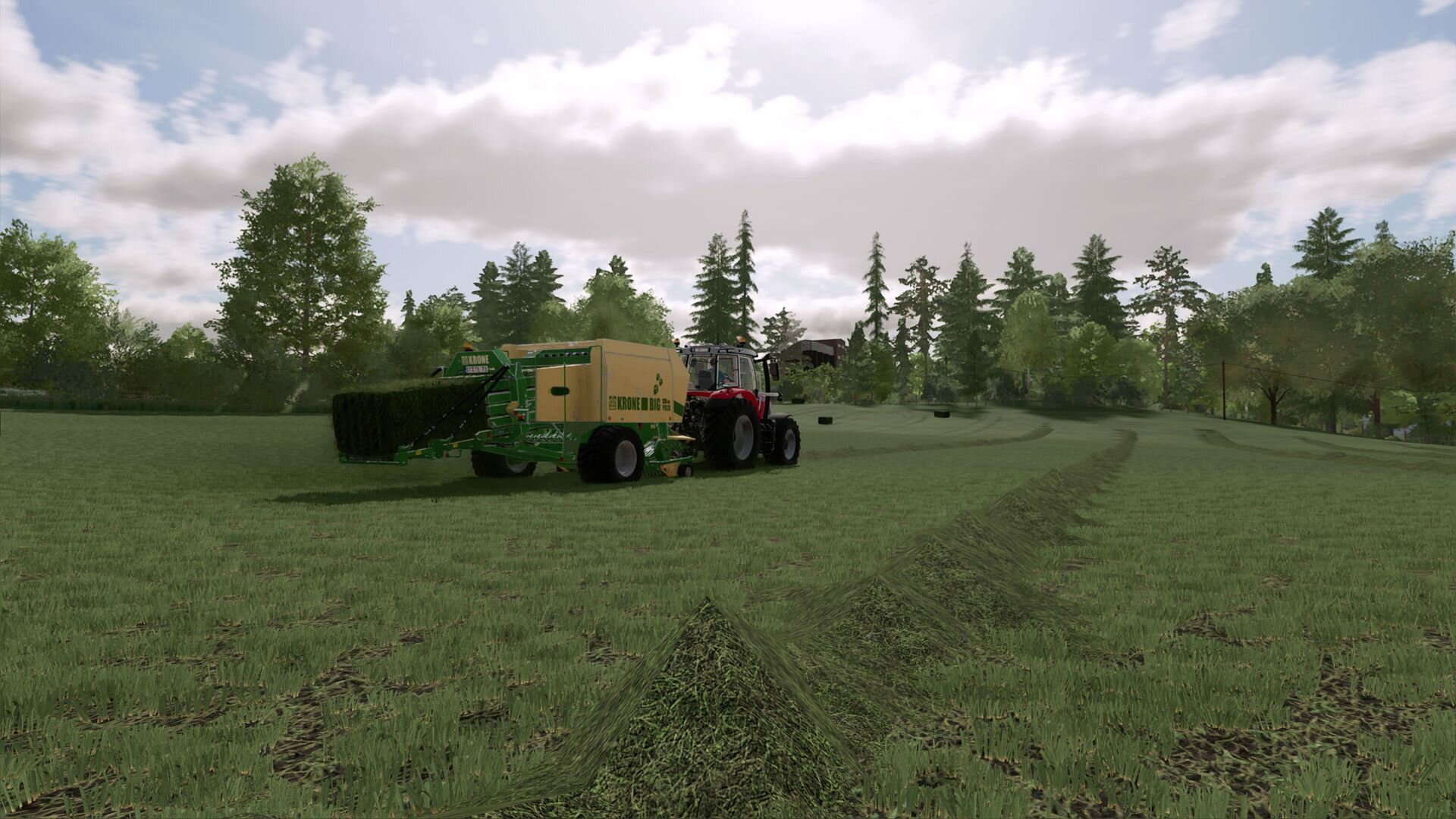 Der MF 6S-180 wieder im Einsatz, dieses mal mit der Großballen Presse.