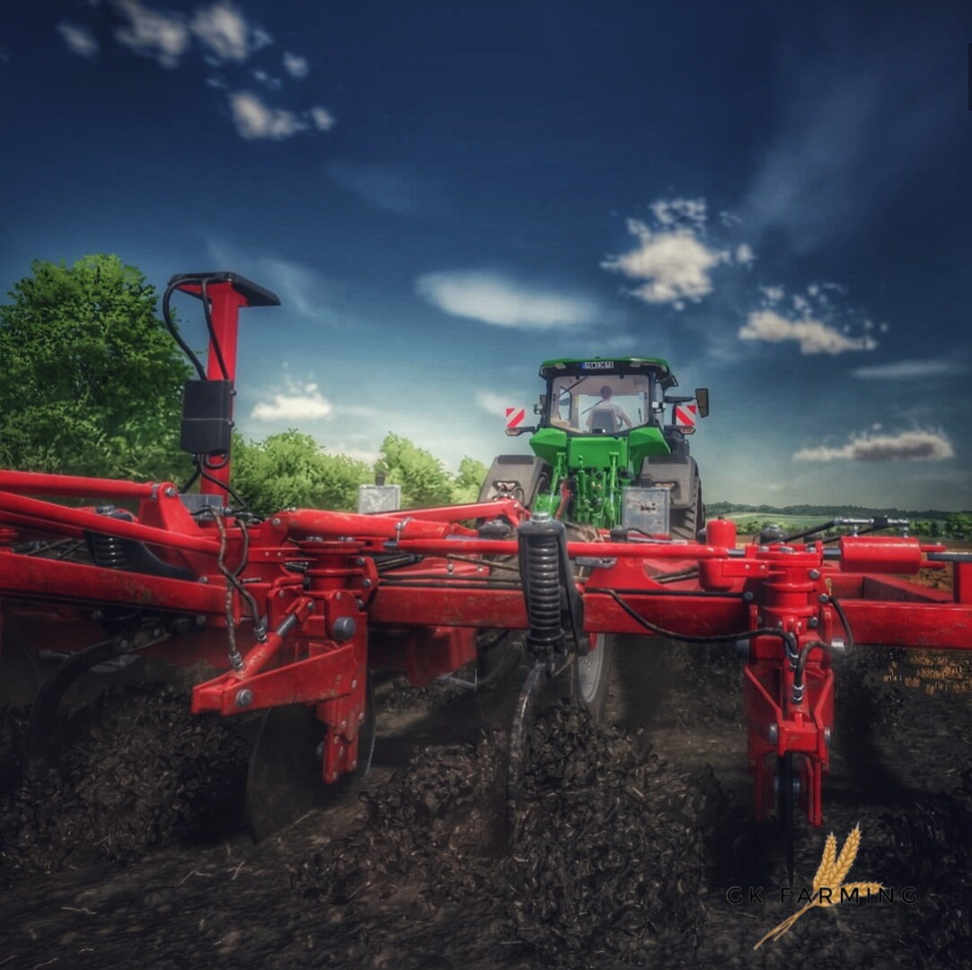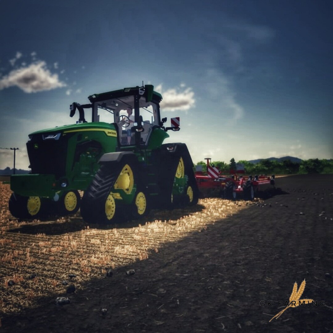 Nach der erfolgreichen Gersteernte muss die Fläche für die weitere Kultivierung vorbereitet werden. Dies übernimmt der Horsch Tiger 6 DT, gezogen von einem John Deere 8 RX 310. Dieser komplett raupengetriebene Traktor ist eine weitere, wirklich beeindruckende Maschine im Fuhrpark der AgroVation.