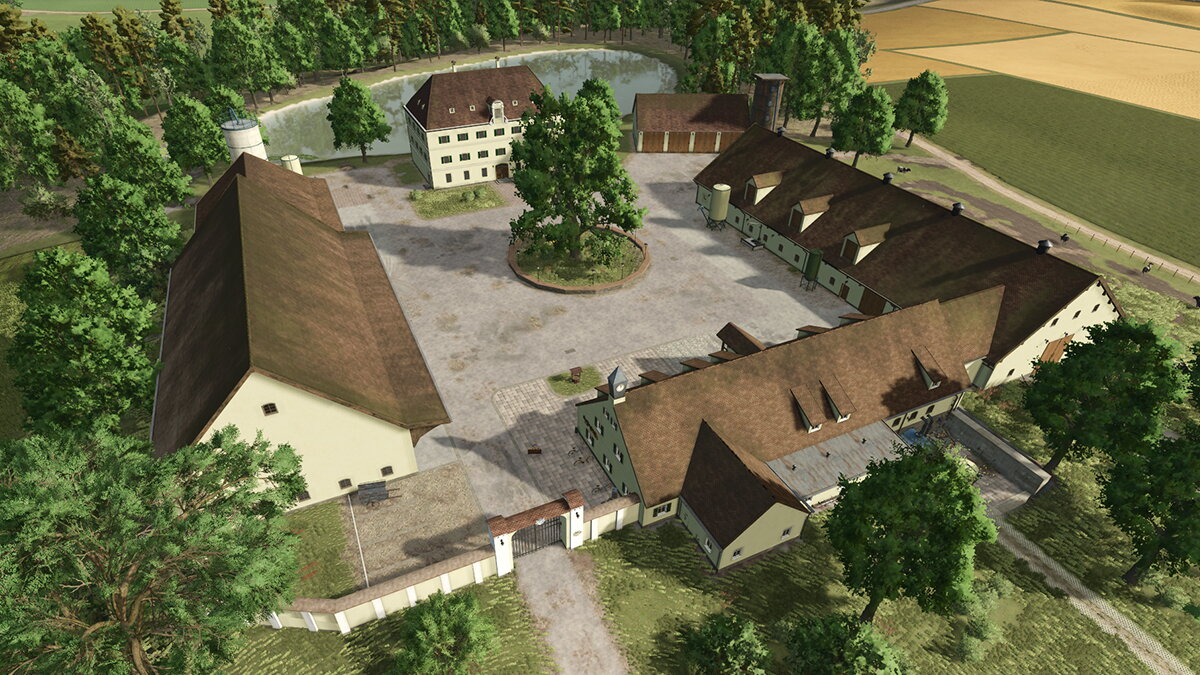 Eine tolle Map mit grandiosen Gebäuden. Hier durfte ich das Hofgut gestalten und dekorieren sowie einige Felder und Wasserstellen in der Umgebung. Das Ergebnis ist ein traditionelles, etwas edleres Hofgut, das meiner Meinung nach wunderbar zu moderneren Maschinen passt – mittelgroß bis groß, aber immer noch mit Charakter und Atmosphäre.