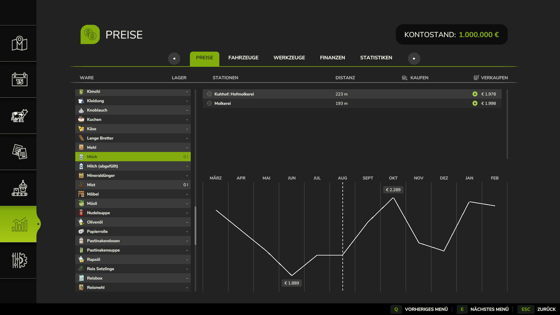 Wegen der Goat Farm bin ich etwas verwirrt – in der Preisübersicht taucht weder bei Milch noch bei Milch (abgefüllt) eine Goat Farm auf (Screenshots sind angehängt). Oder meinst Du etwas anderes?