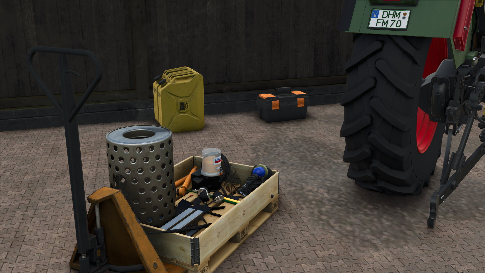 • :moin:und ein schönes Wochenende euch. Wie im vorherigen Post schon gesagt hat der Fendt einen Motorschaden und da im Oktober sonst nichts mehr zu tun war, hab ich mir gleich ein wenig Grundausstattung und Ersatzteile besorgt welche ich beim Händler für 700€ abholen konnte. Da der Tank des Fendts auch ziehmlich leer war habe ich ebenfalls 2 Dieselkanister (2x50L) für 150€ gekauft. Das war dann der Oktober. Jetzt im November wurde noch ein Vicon PS 1654 Düngerstreuer für 4050€ erworben um unsere Ackerflächen zu düngen (Der Dünger stand zum Glück noch in der alten Scheune). Ob das legal ist wollen wir mal beiseite schieben^^, hat niemand gesehen. Die 2 Palleten voller Käse wurden noch an die Dorfscheune verkauft, sowie ein Auftrag von Walter aus dem Nachbardorf zur Entsteinerung seines Feldes abgeschlossen durch welche wir noch mal 6.676€ sowie ca. 4700L Steine bekamen. Diese wurden mit einem alten Krone Emsland Kipper, welchen wir für 3.500€ der Gärtnerei abkaufen konnten zum Hof transportiert und abgekippt. Ansonsten ist auch nicht viel passiert, am Mittwoch ist im Nachbarsdorf ein Old- & Youngtimer treffen mit Anschließender Maisparty, vielleicht trifft man ja den ein oder anderen. Bis dann euer Fendt Enthusiast :Tach: