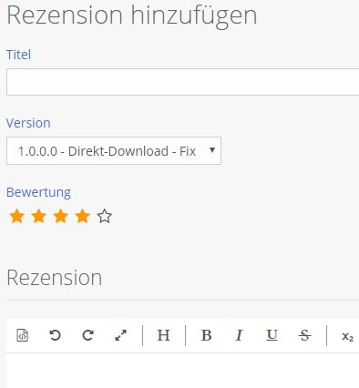 Bei den Downloads kann man nun zusätzlich Rezensionen verfassen und dabei eine Bewertung abgeben: