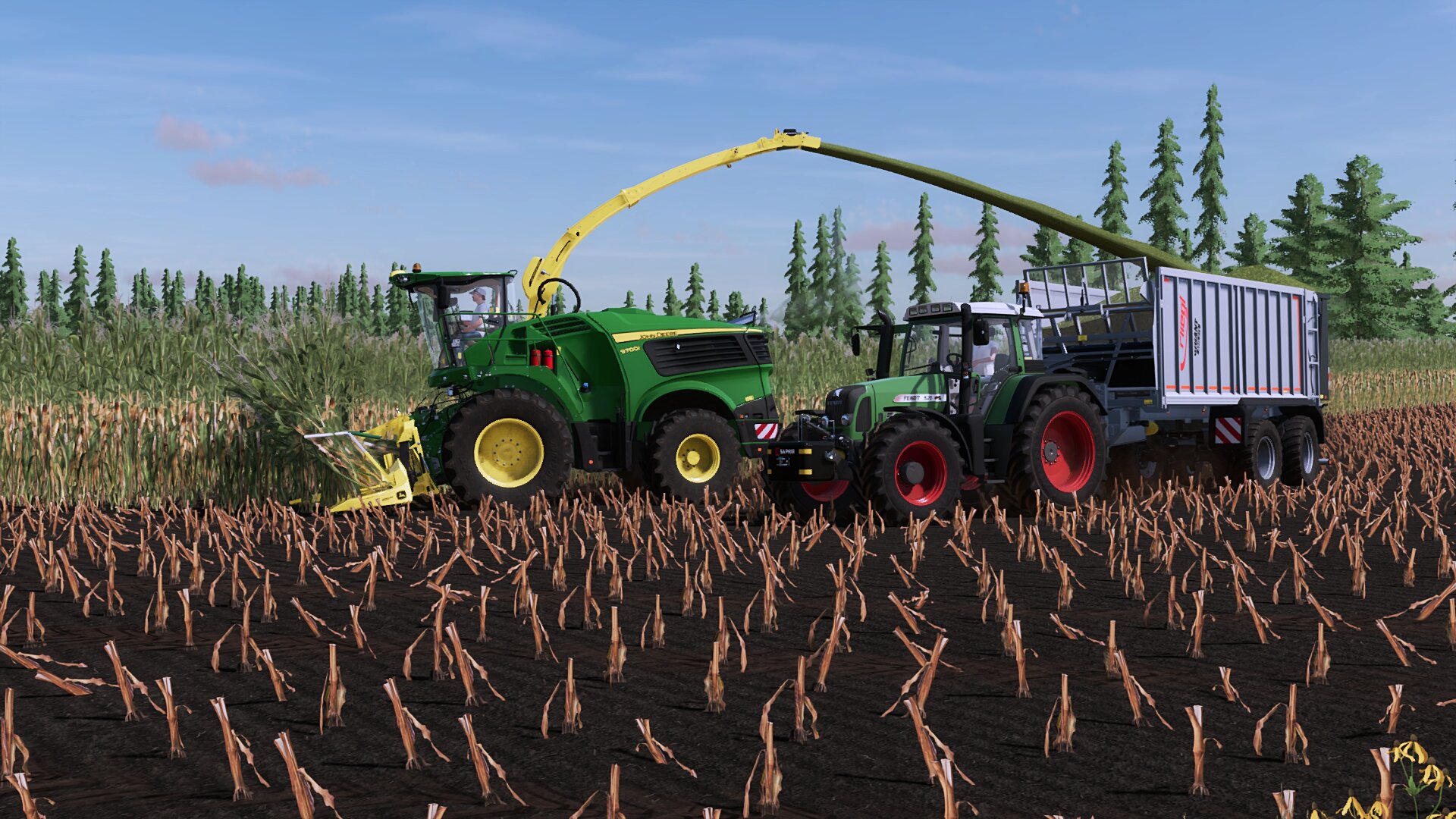 Gehäckselt wurde mit einem John Deere 9800i eine Neumaschiene die sich unser ansässiges Lohnunternehmen für die diesjährige Saison zugelegt hat und auch weiter Jahre da verbringen wird.
