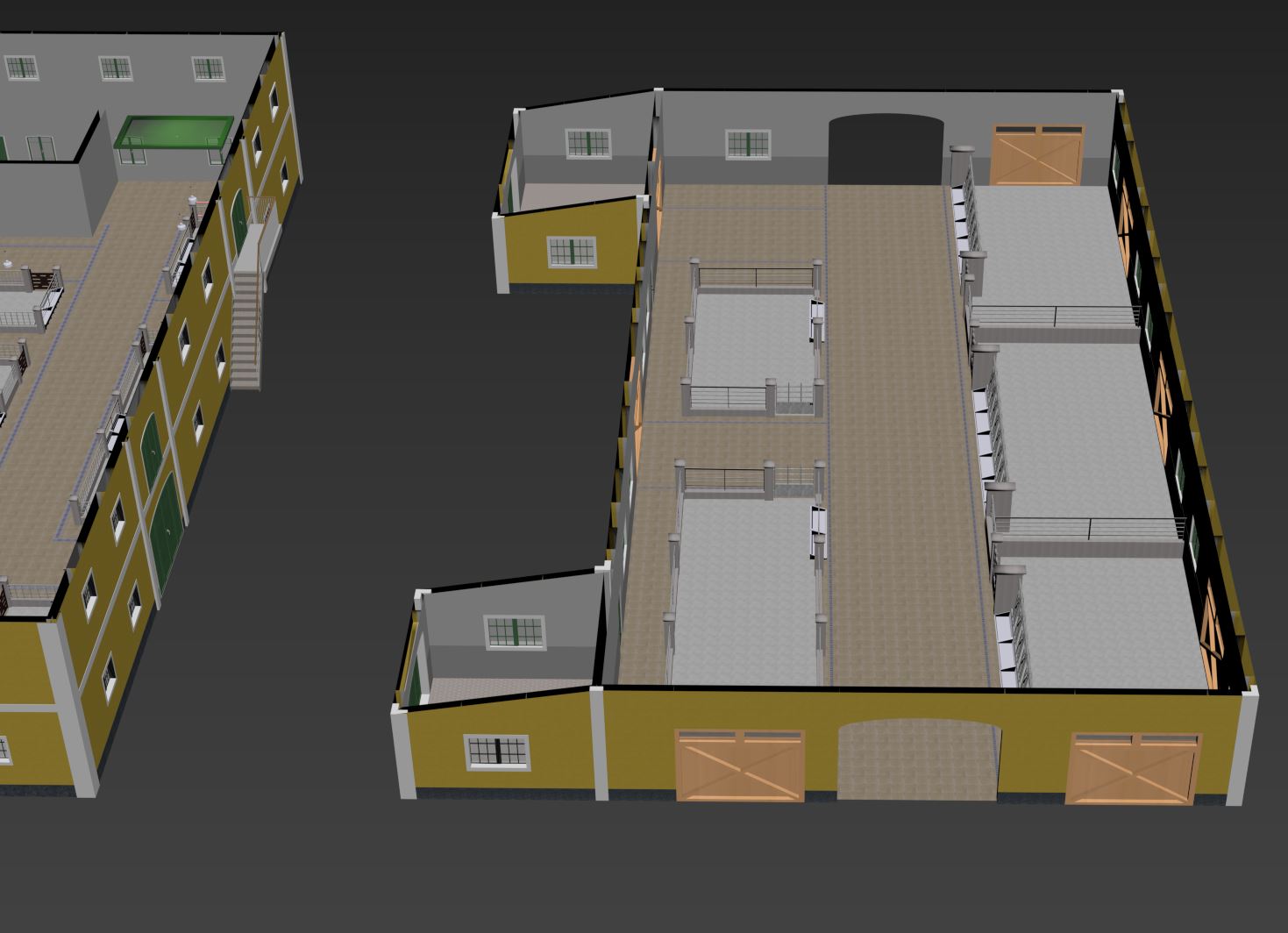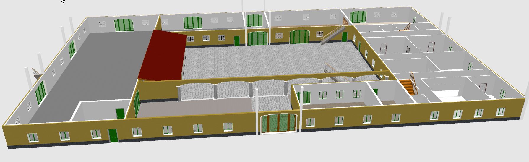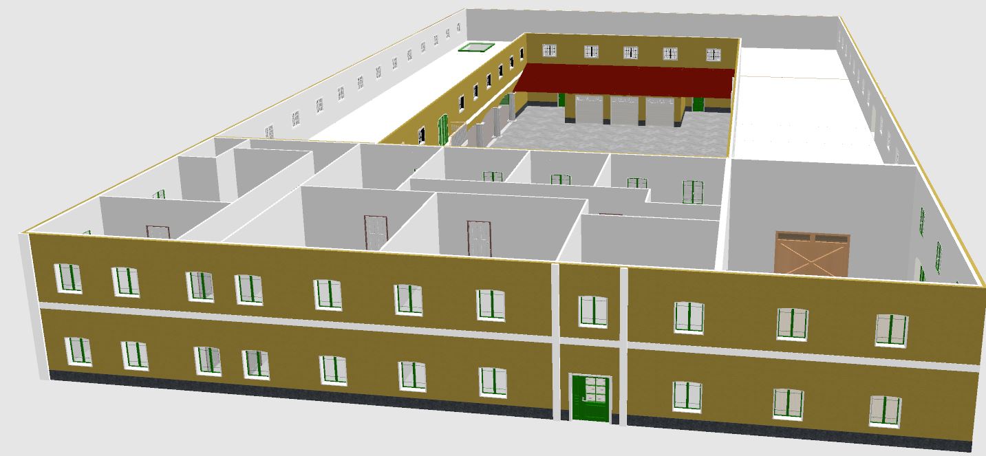 So, Hof-Grundgerüst gezeichnet und texturiert.