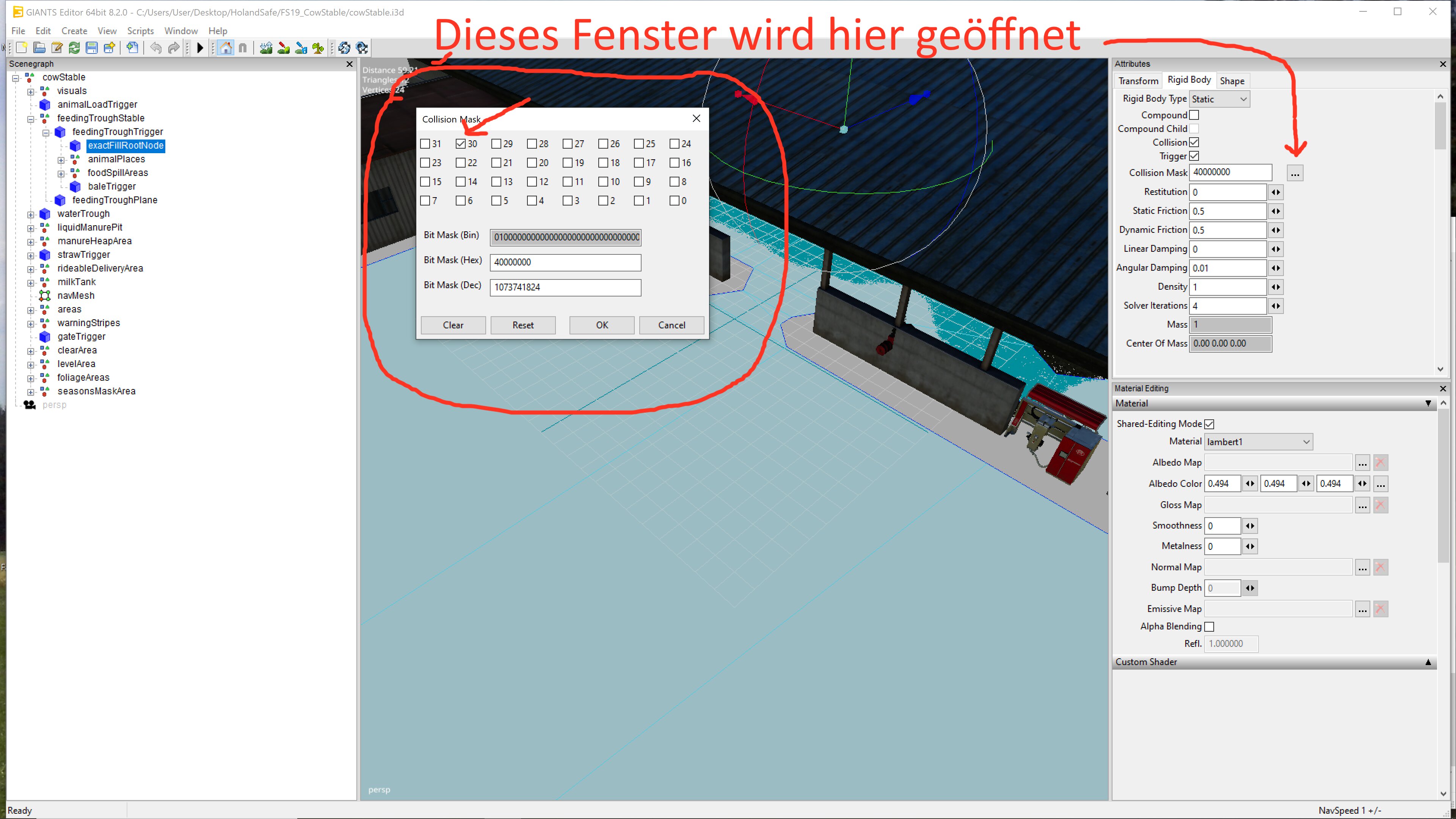 das hier : Warning: Invalid exactFillRootNode collision mask for unloadTrigger. Bit 30 needs to be set! Bedeutet das ein Trigger nicht die richtige collision mask aufweist. Vermutlich heißt er unloadTrigger. Suche diesen in der i3d und setze den Haken bei Bit 30.
