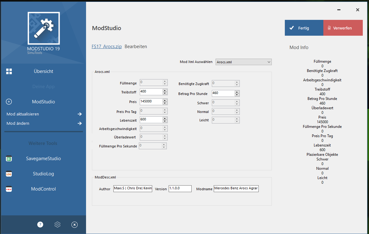 - ModStudio (XML Modeditor zum Bearbeiten eurer Mod XML Werten (Wird Überarbeitet)) [99%]