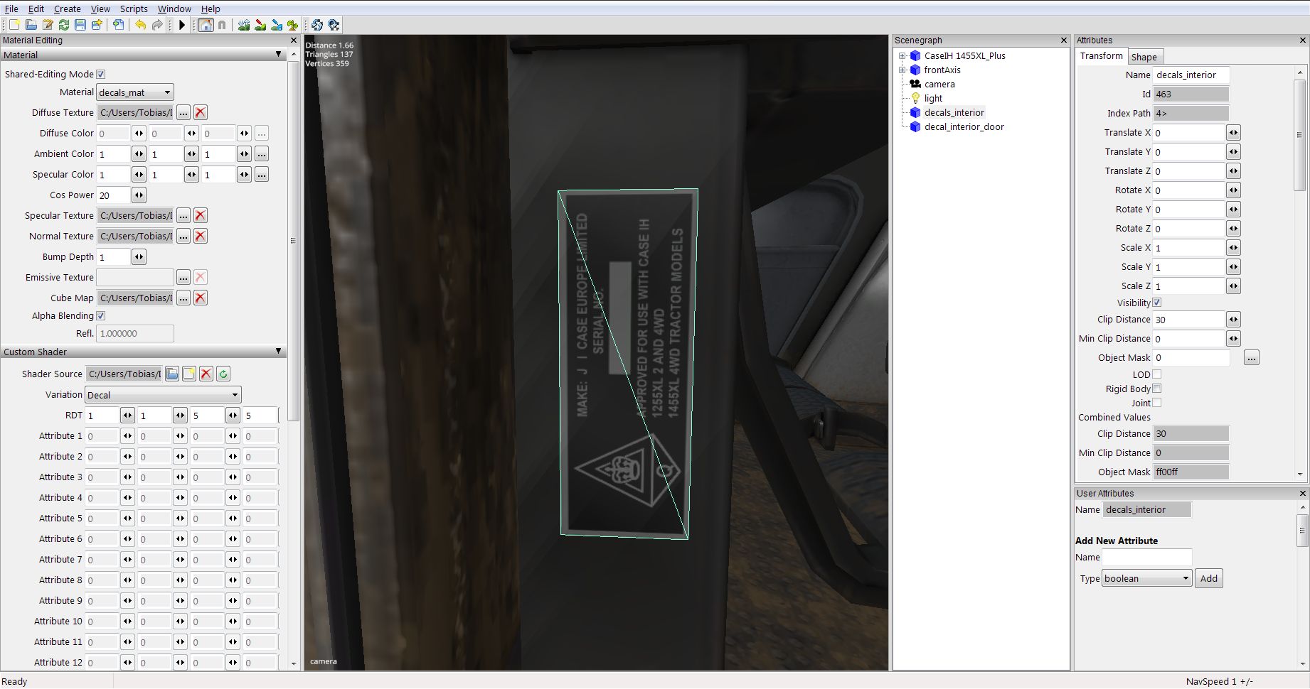 - Unter Custom Shader den Vehicle Shader einfügen und bei Variation „Decals“ auswählen.