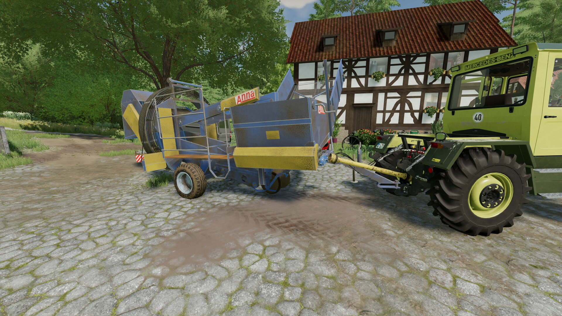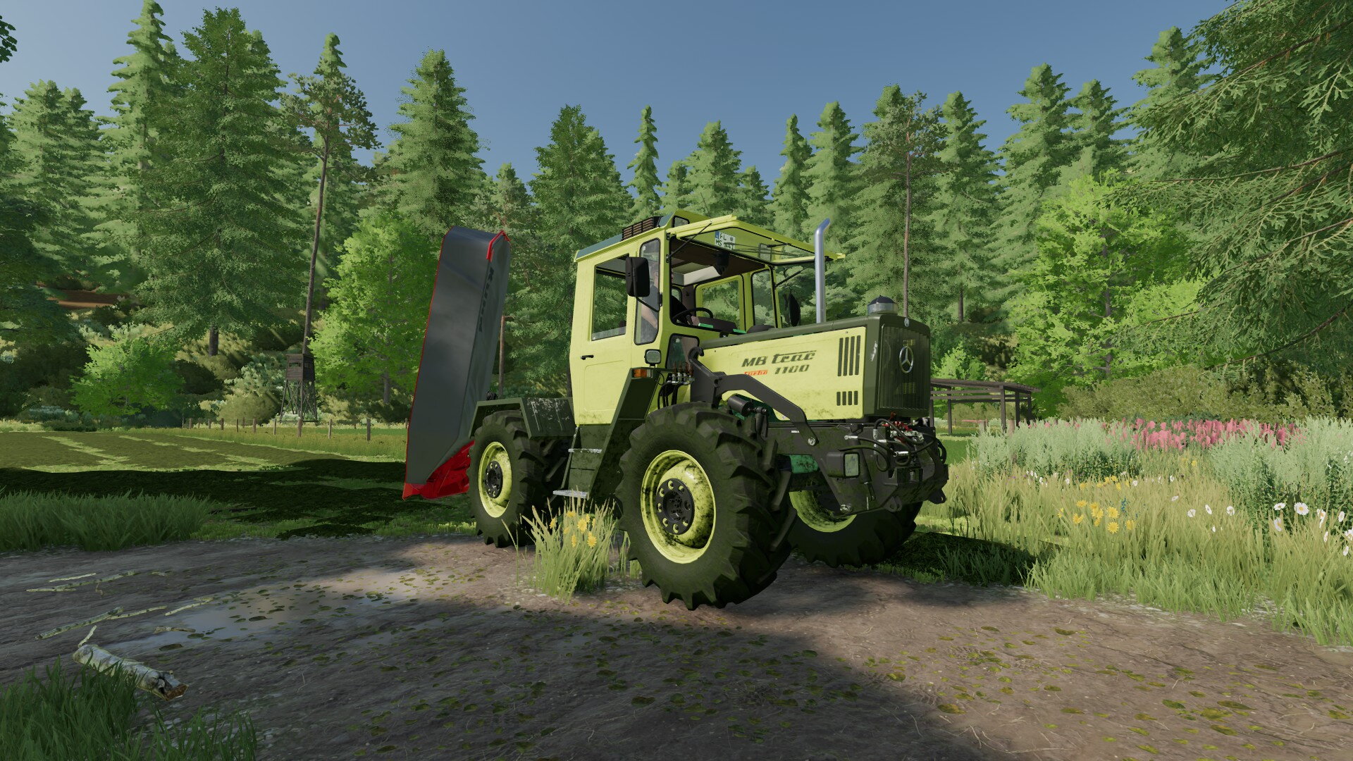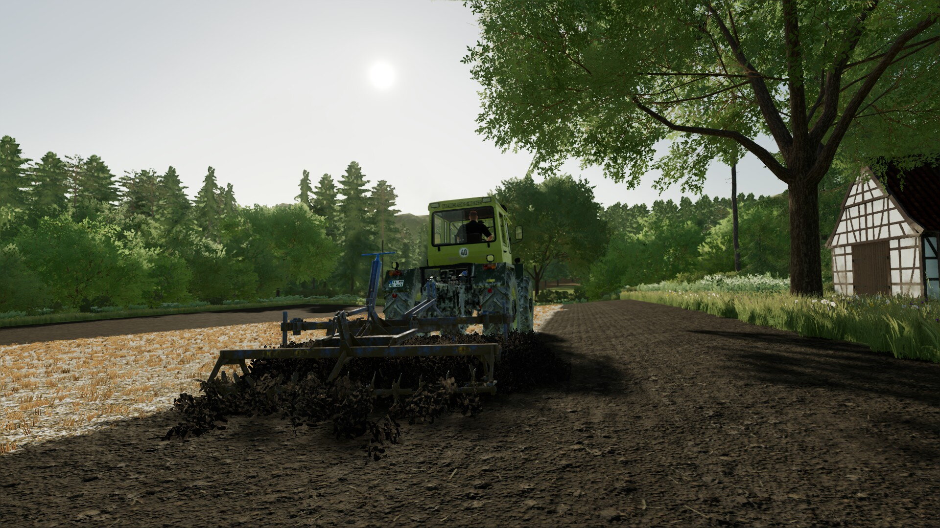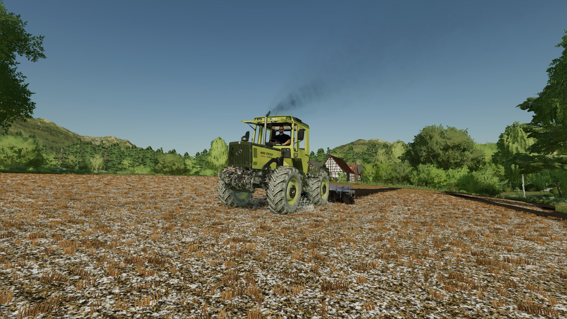 Ja, und ich sprach von Neuerungen. Eine davon habt ihr sicher schon entdeckt. Richtig, es gibt einen weiteren MB-Trac auf dem Hof. Wir haben relativ günstig einen 800er von 1987 schießen können. Er hat zwar schon 6.500 Betriebsstunden, stand aber sonst technisch gut da. Bei der Menge an Fahrten, die wir durch den Ackerbau haben, müssen wir sehen, dass wir robuste und zugkräftige Maschinen auf dem Hof haben. Und da passt der 800er einfach super.
