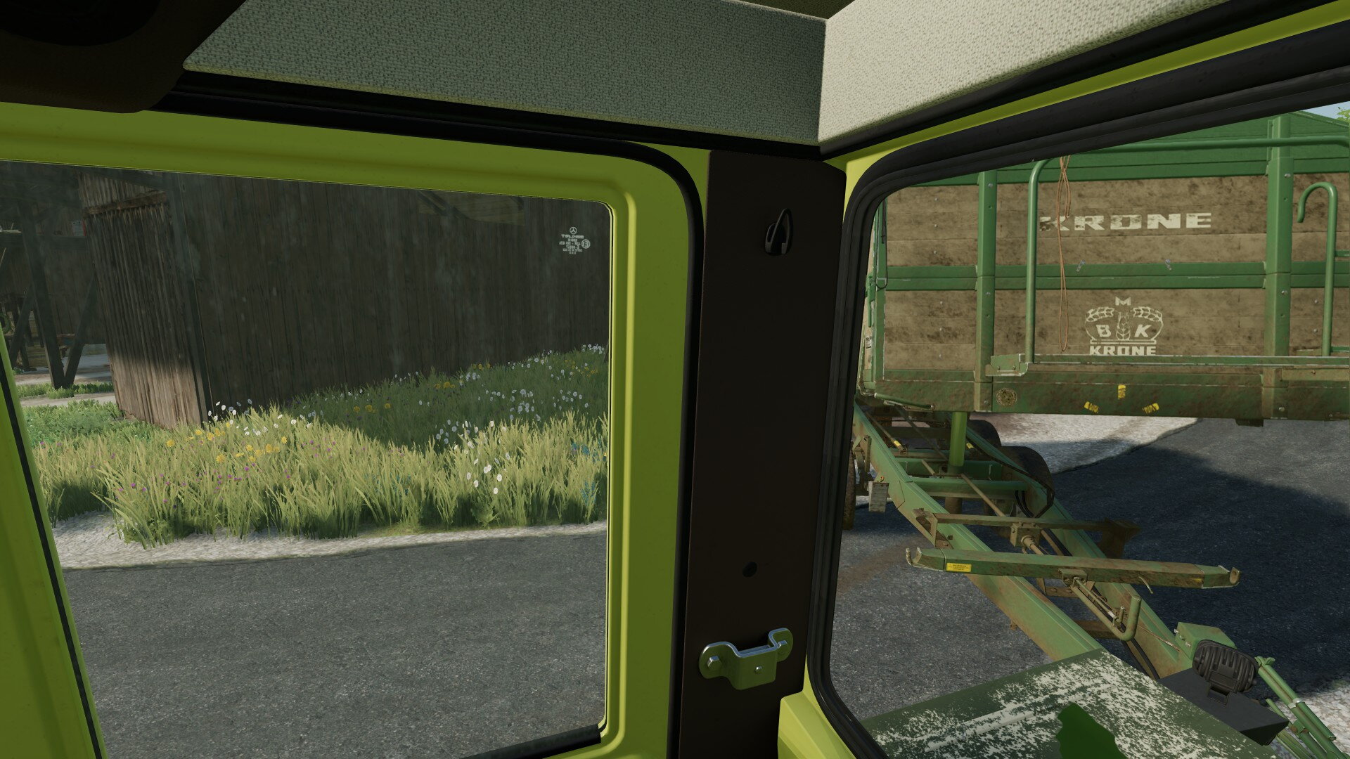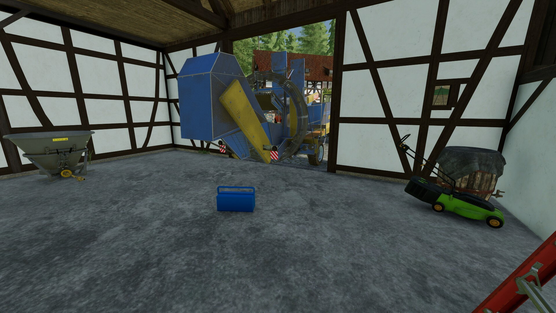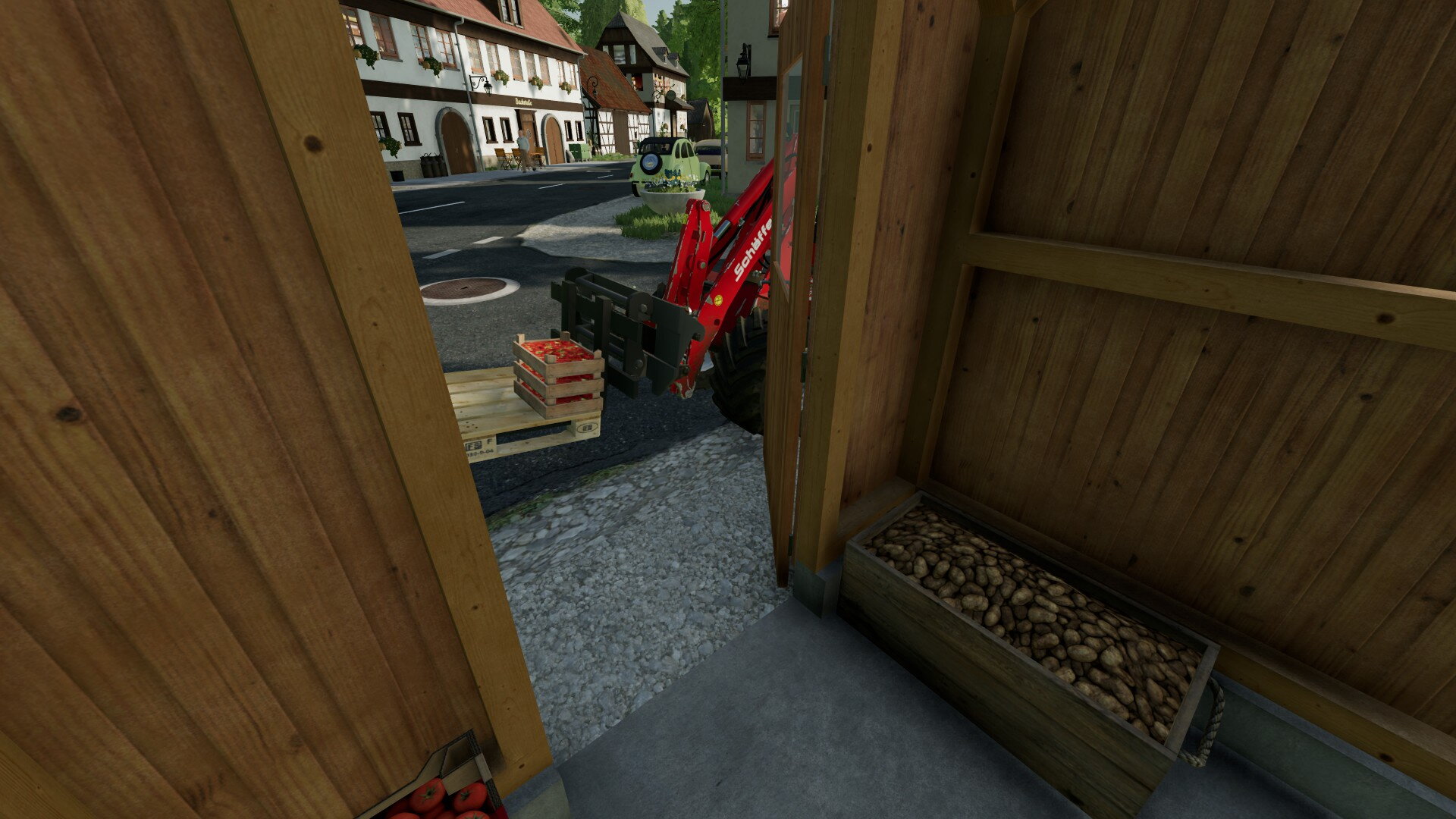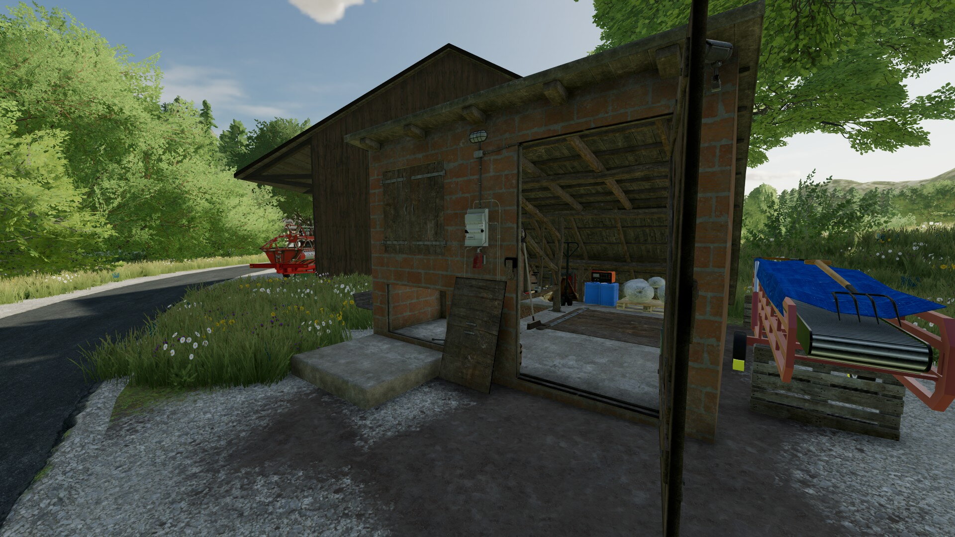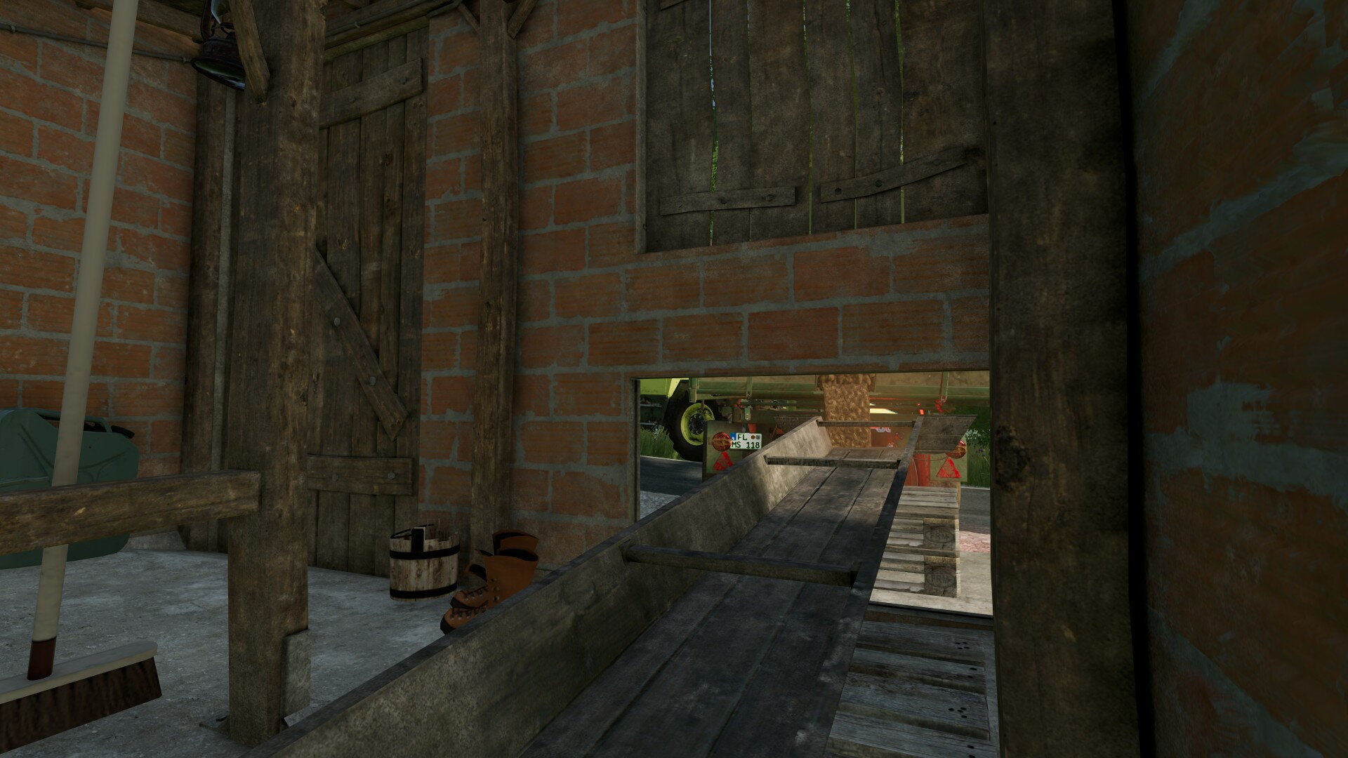 Der Strohtrigger ist normalerweise im Stall. Tor auf, gerade rein und Ballen absetzen. Ich weiß jetzt nicht, ob er nicht sogar bis vors Tor reicht.