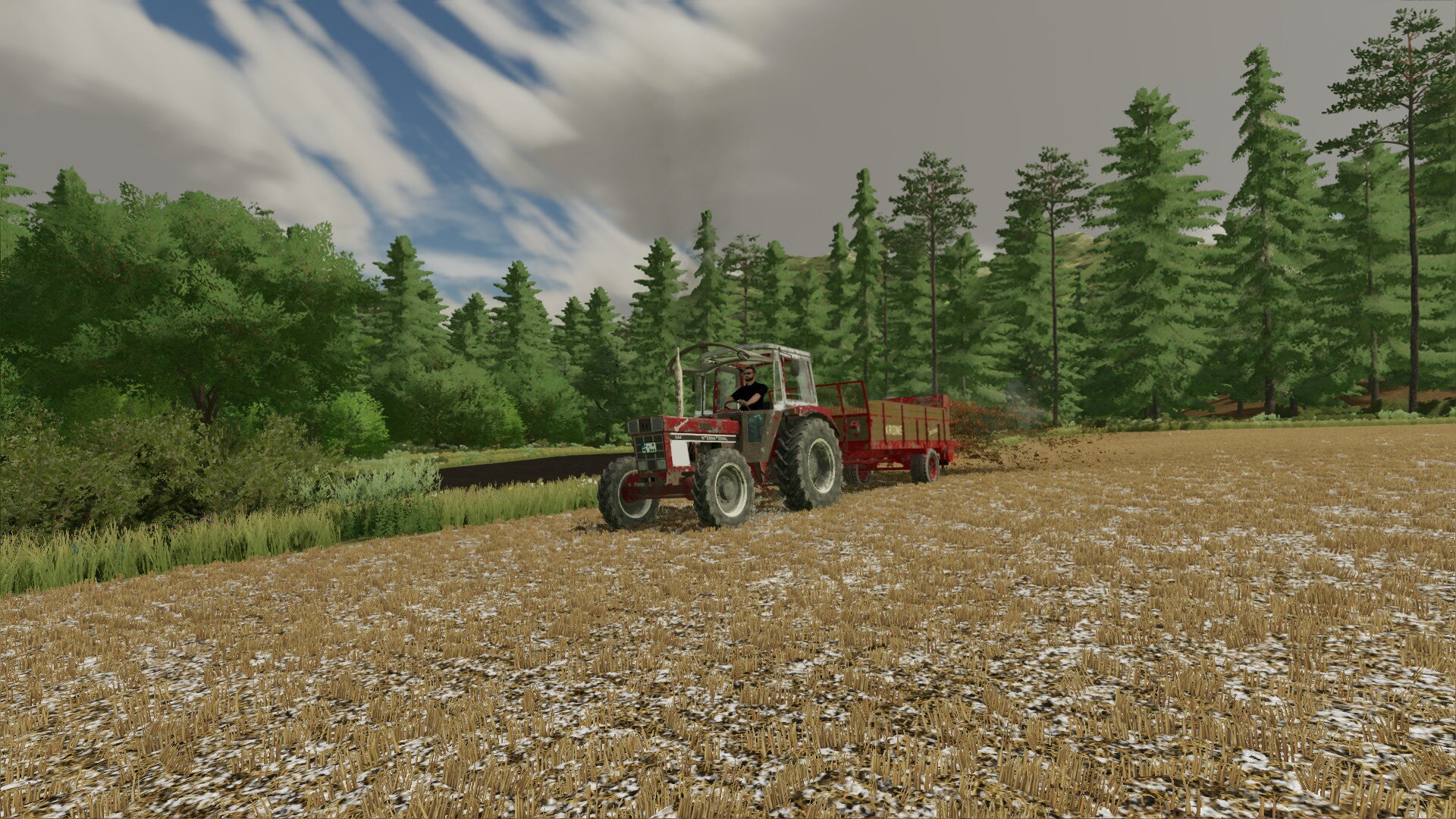 Heute ging es dann an die Feldbearbeitung des Weizenschlages. Nachdem mein Kumpel wieder das Kalken übernommen hat, haben wir Festmist auf die Fläche ausgebracht und danach direkt eingearbeitet. Geplant ist hier eine Zwischenfrucht, um dann im nächsten Frühjahr Hafer zu säen. Mist fahren geht immer noch am Schönsten mit dem IHC und dem Krone-Streuer.