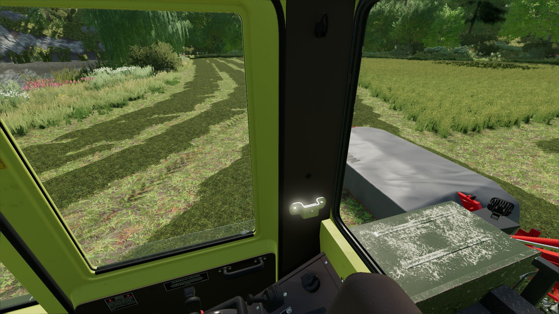 Zur Vorführung hatte ich mir ein Kuhn-Heckmähwerk beim Händler organisiert, mit dem ich den 3. Schnitt durchführen darf. Die höhere Arbeitsbreite und die Möglichkeit, deutlich schneller als mit unseren Mähwerken zu fahren, ist schon gigantisch. Da kann man fast überlegen, auf ein Frontmähwerk gänzlich zu verzichten.