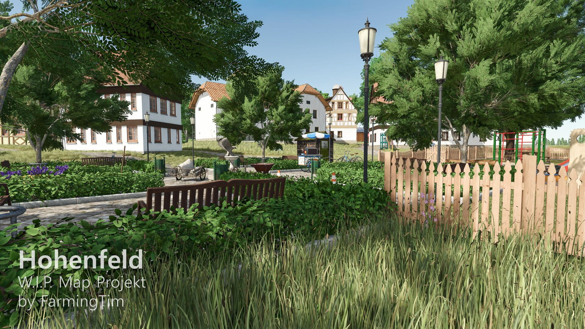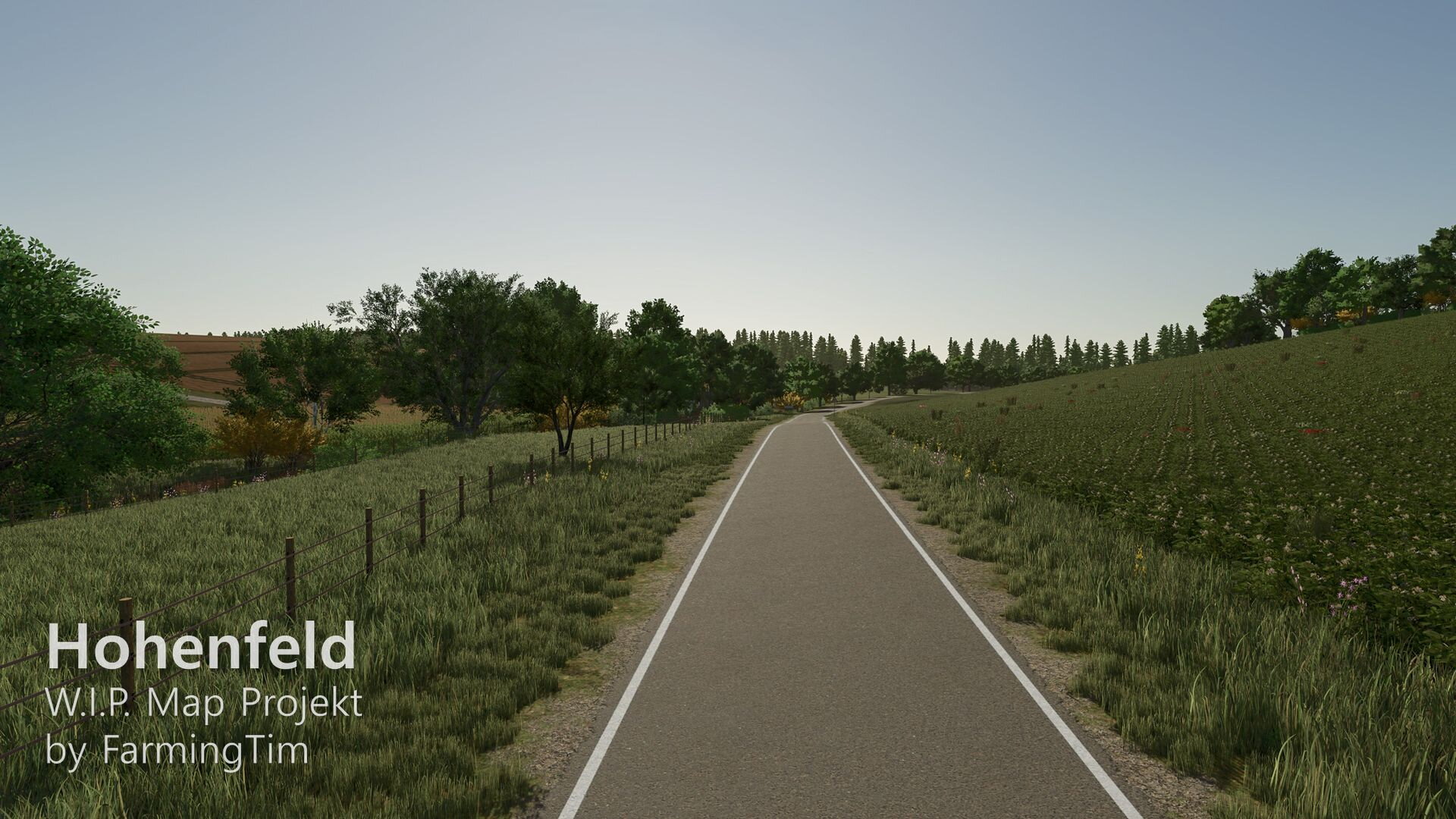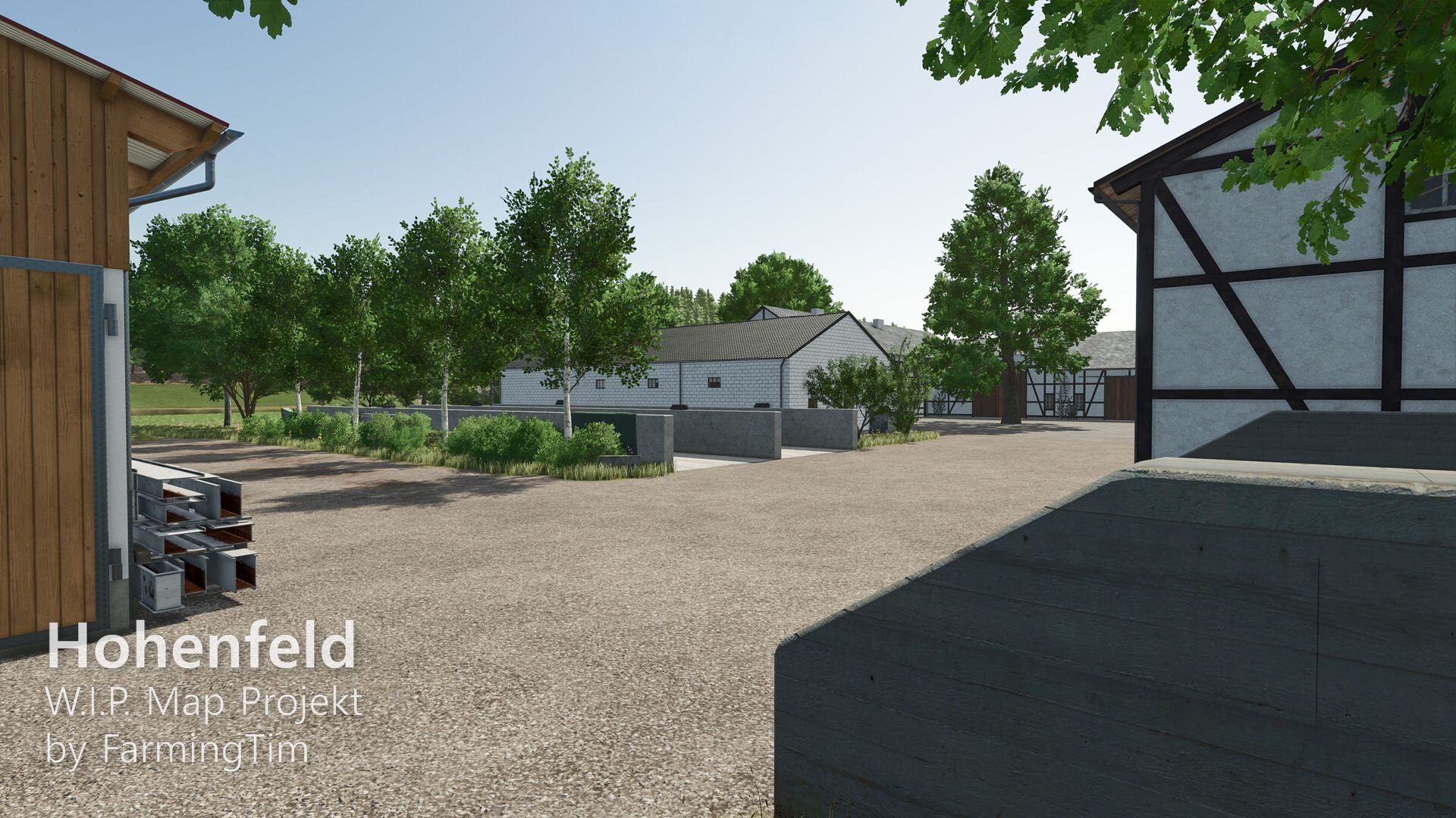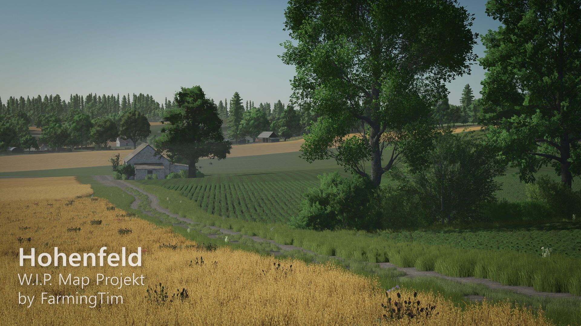 heute möchte ich euch zum ersten Mal einen Einblick in mein aktuelles Projekt geben: die Map Hohenfeld. Die Karte spielt in der heutigen Zeit und ist im fiktiven Landkreis Lindental angesiedelt. Zentrum ist der Hauptort Hohenfeld, daneben gibt es den kleinen Weiler Schafwinkel, in dessen Umgebung auch der traditionsreiche Schafwinkelhof liegt – dieser Hof züchtet bereits seit 1870 Schafe und gilt als Kulturgut der Region. Ein bekannter Wanderweg führt direkt dort entlang.
