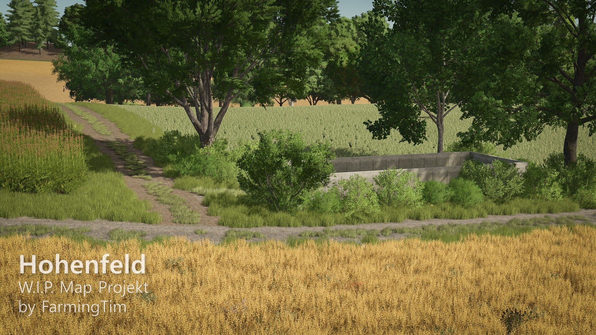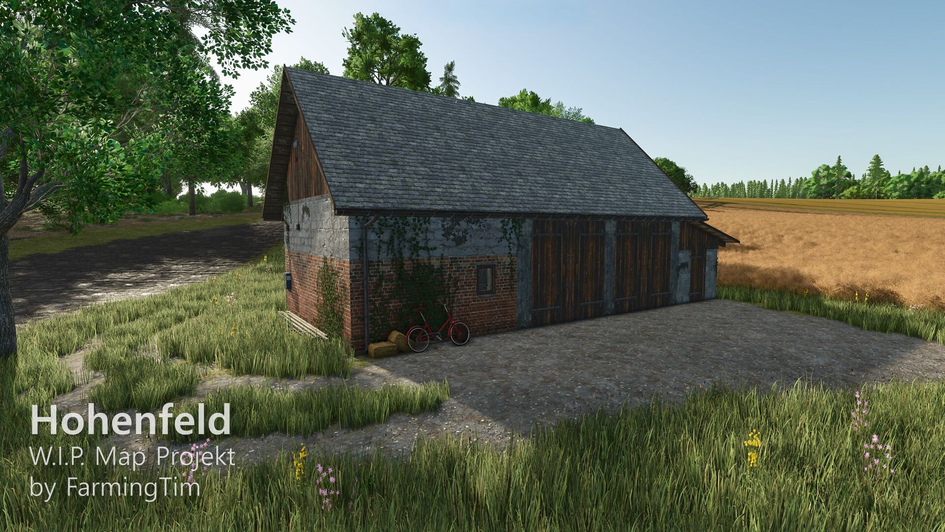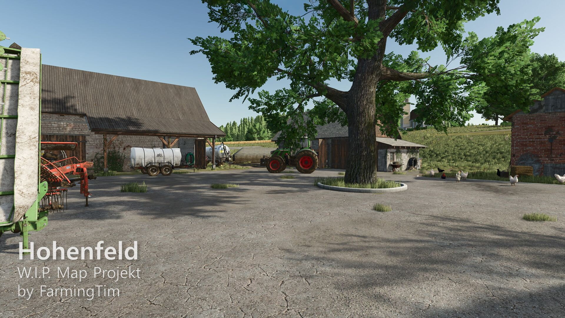 heute möchte ich euch zum ersten Mal einen Einblick in mein aktuelles Projekt geben: die Map Hohenfeld. Die Karte spielt in der heutigen Zeit und ist im fiktiven Landkreis Lindental angesiedelt. Zentrum ist der Hauptort Hohenfeld, daneben gibt es den kleinen Weiler Schafwinkel, in dessen Umgebung auch der traditionsreiche Schafwinkelhof liegt – dieser Hof züchtet bereits seit 1870 Schafe und gilt als Kulturgut der Region. Ein bekannter Wanderweg führt direkt dort entlang.
