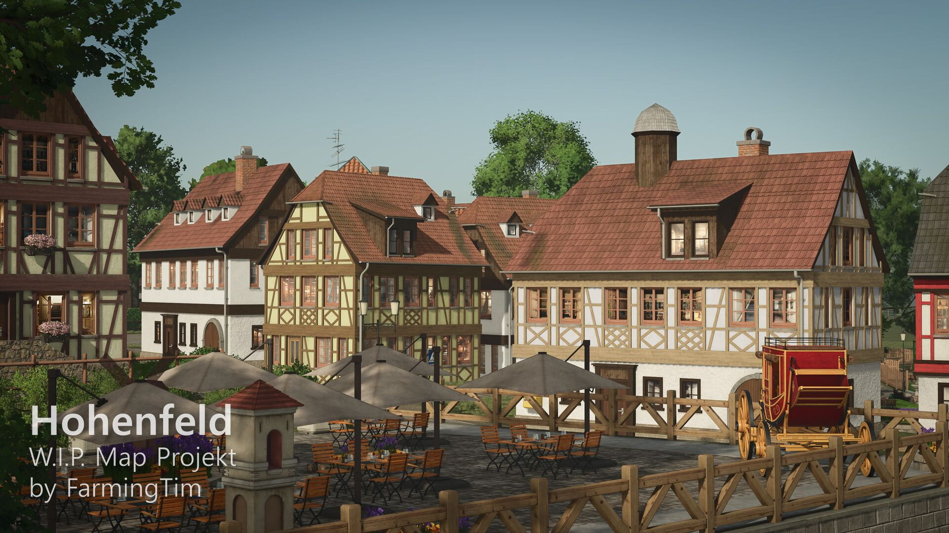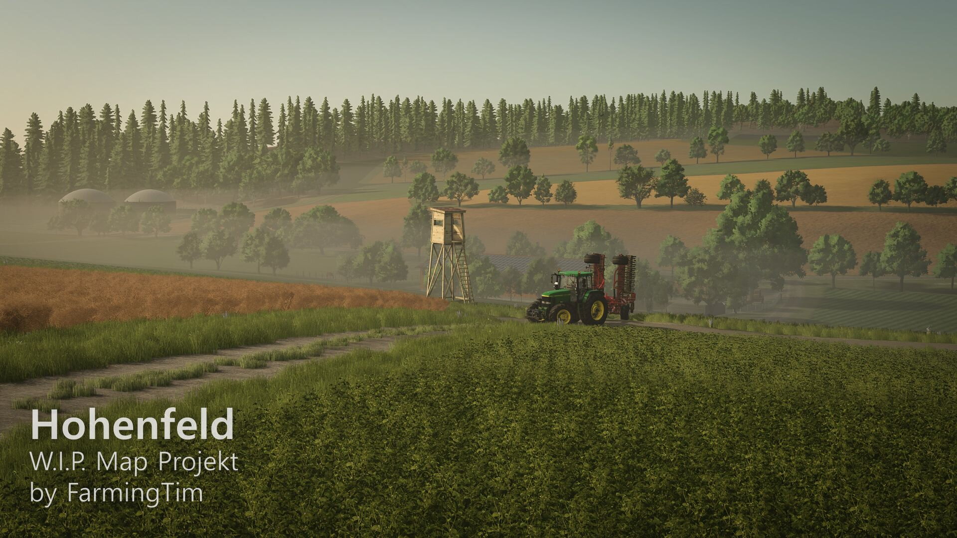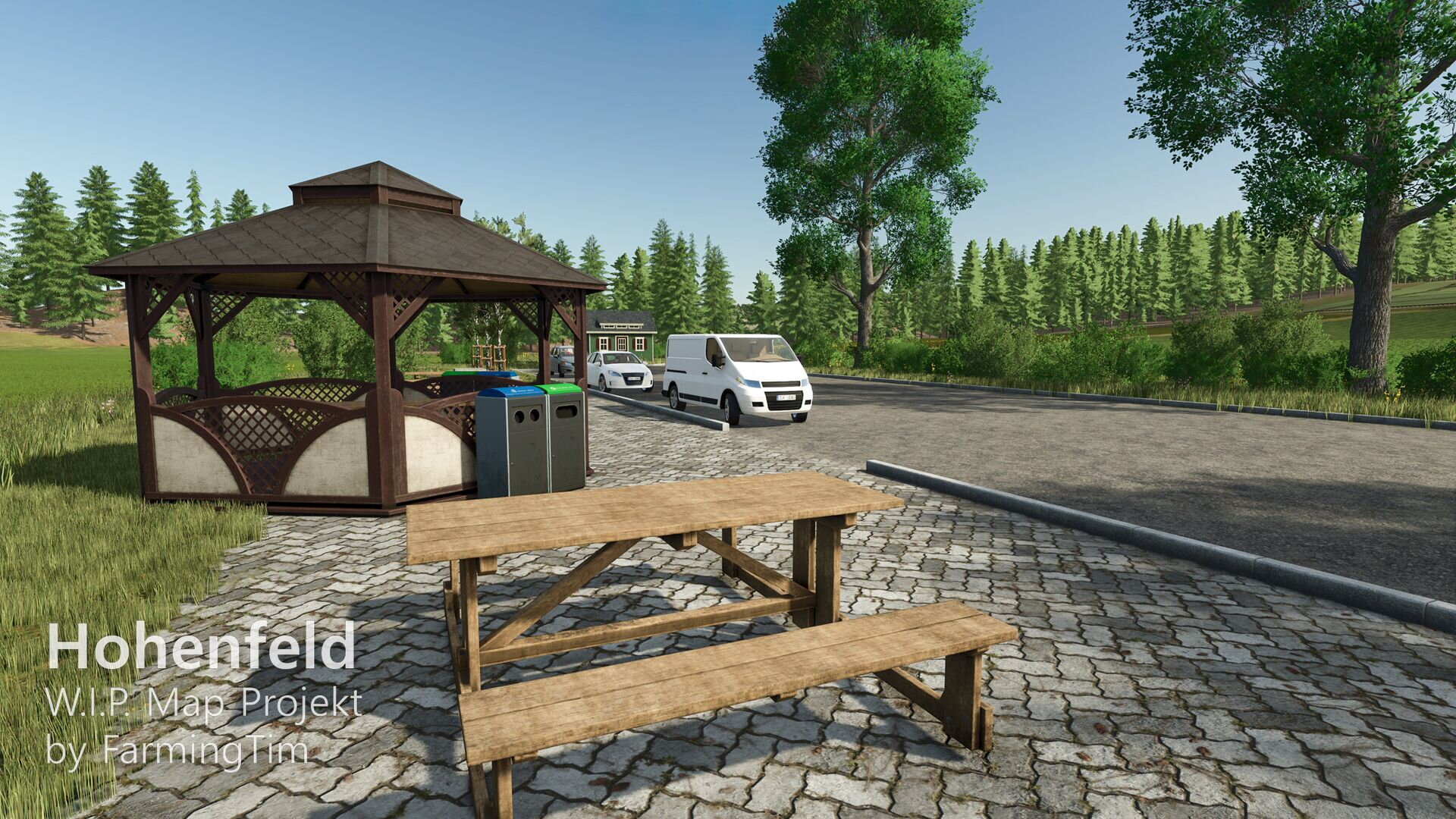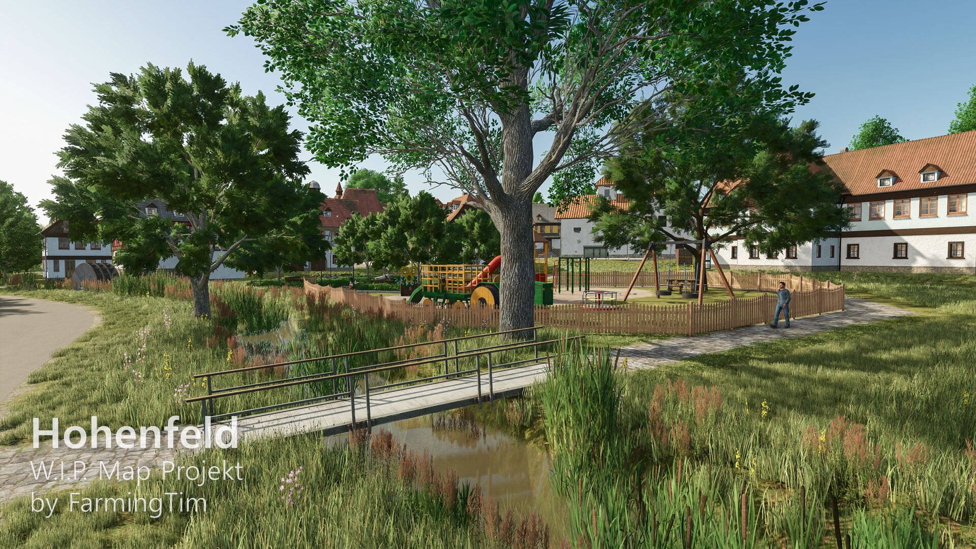 heute möchte ich euch zum ersten Mal einen Einblick in mein aktuelles Projekt geben: die Map Hohenfeld. Die Karte spielt in der heutigen Zeit und ist im fiktiven Landkreis Lindental angesiedelt. Zentrum ist der Hauptort Hohenfeld, daneben gibt es den kleinen Weiler Schafwinkel, in dessen Umgebung auch der traditionsreiche Schafwinkelhof liegt – dieser Hof züchtet bereits seit 1870 Schafe und gilt als Kulturgut der Region. Ein bekannter Wanderweg führt direkt dort entlang.