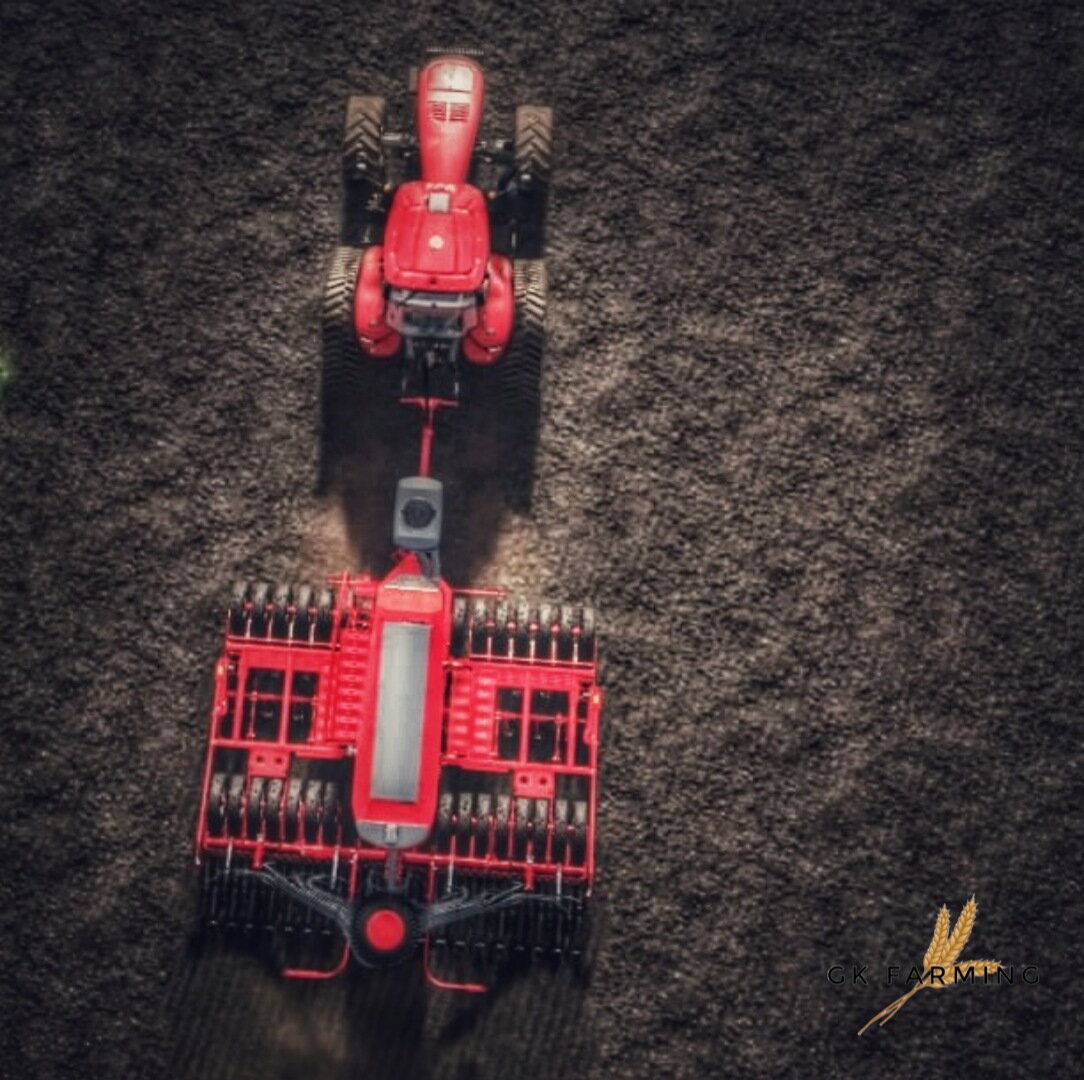 Wieder verfolgt von unserer Drohne bereite ich ein nicht nur weiter belüftetes, sondern vor allem auch ebenes Saatbett vor.