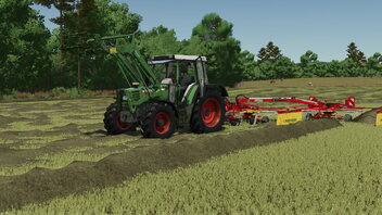 Tach, es ist wieder einiges passiert. Nachdem die Strohballen gepresst wurden gang es auch schon ins Grünland unsere zwei Wiesen mähen, da für die Tiere auch noch Futter her musste. Dafür haben wir eine Lieferung aus Erlengrat erhalten , die aus einem Pöttinger Novadisc 305 (7.200€), einem gebrauchten Pöttinger Wender (10.350€) und einem Eurotop 611 A (20.000€) bestand.