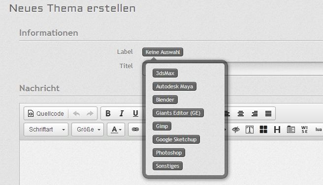 Beim erstellen eines Beitrages habt ihr daher wie gehabt bei einigen Bereichen die Möglichkeit ein Label auszuwählen, Beispiel anhand Support / Modding Programme: