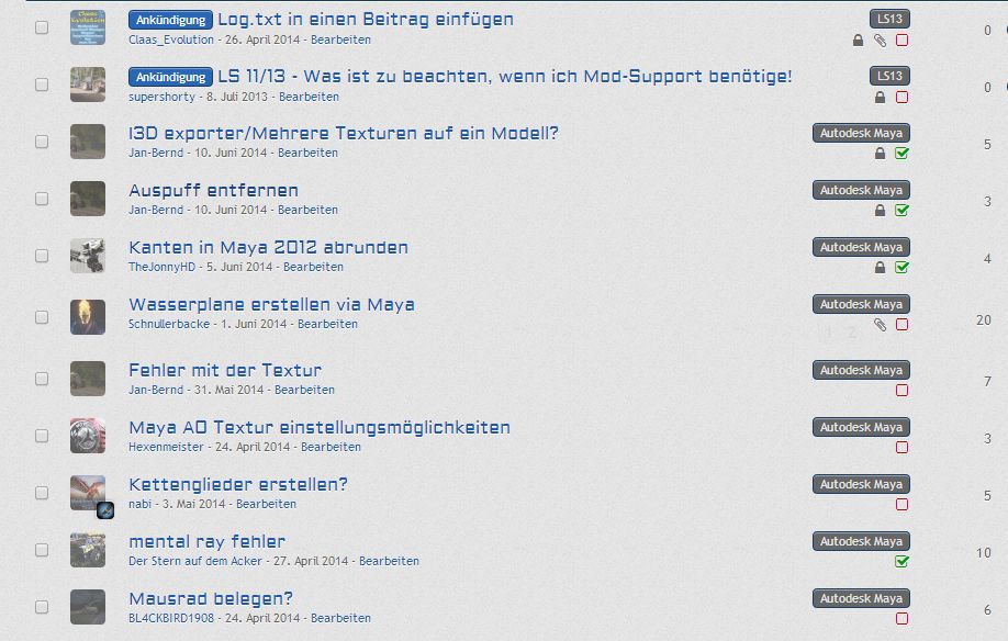Neu: Klick man in der Übersicht auf eines dieser Label, wie beispielsweise Autodesk Maya, so werden die Themen gefiltert und nur noch die zugehörigen Themen angezeigt. Dazu noch angepinnte Themen und Ankündigungen, diese werden nicht ausgefiltert.
