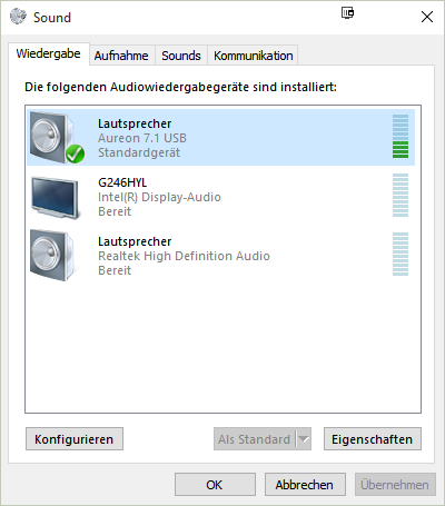 Über die Systemsteuerung im Bereich Hardware und Sound - Sound lässt sich, sofern vorhanden, im Reiter Wiedergabe das Standard-Wiedergabegerät festlegen (Markierung - Als Standard).