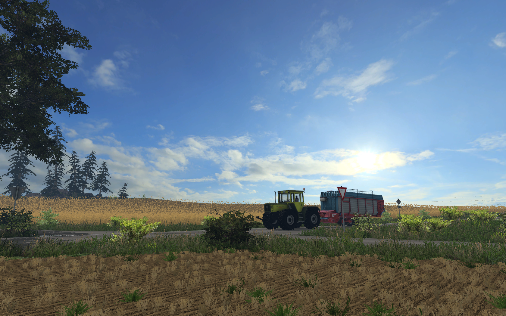 Weiter ging es dann mit dem Mist und Gülle ausfahren auf 4 der 6 kleinen Feldern die ich besitze. Danach wurde fleißig gegrubbert und die Saat ausgebracht. Während das Getreide langsam heran wuchs hab ich begonnen das noch zu erntende Rapsfeld abzudreschen. Der Raps lagert zurzeit im Silo und wartet auf die nächste Nachfrage von einem der Landhandel. Am nächsten Tag hab ich mich dann mit meinem Einreiherhäcksler von Fahr auf den weg gemacht und das Maisfeld gehäckselt. Inzwischen hatte ich mir schon durch den Verkauf alter, unnötiger Geräte den Steyr 8080 mit 72 PS und einen Einachser gekauft welcher im Gegensatz zum alten Drehschemel mehr über weit mehr Volumen verfügte und besser zu fahren war. Außerdem konnte er auch Ballen laden was den Kauf eines weiteren Anhängers ersparte. Nachdem wieder alle Felder mit dem alten Fahr- Drescher abgeerntet war kam ein ganz schöner Ertrag raus. Zum einholen des Strohs habe ich mir die Claas Rollant für einen Tag gemietet welche ich später wohl erwerben werde. Anschließen wurden die Ballen auf den Einachser aufgeladen und im Stall wettergeschützt untergebracht. Mit dem Wetter hatte ich noch gerade so glück, denn eine Stunde später hat es gehagelt... Den ganzen Tag. Am nächsten Morgen hab ich dann begonnen mit einem 3000 Liter Fass, welches ich mir kurz davor geleistet habe alle Felder mit reichlich Gülle abgefahren. Mein Güllelager is aber noch immer nicht annähernd leer (die Schweine kacken ja wirklich vieeeel