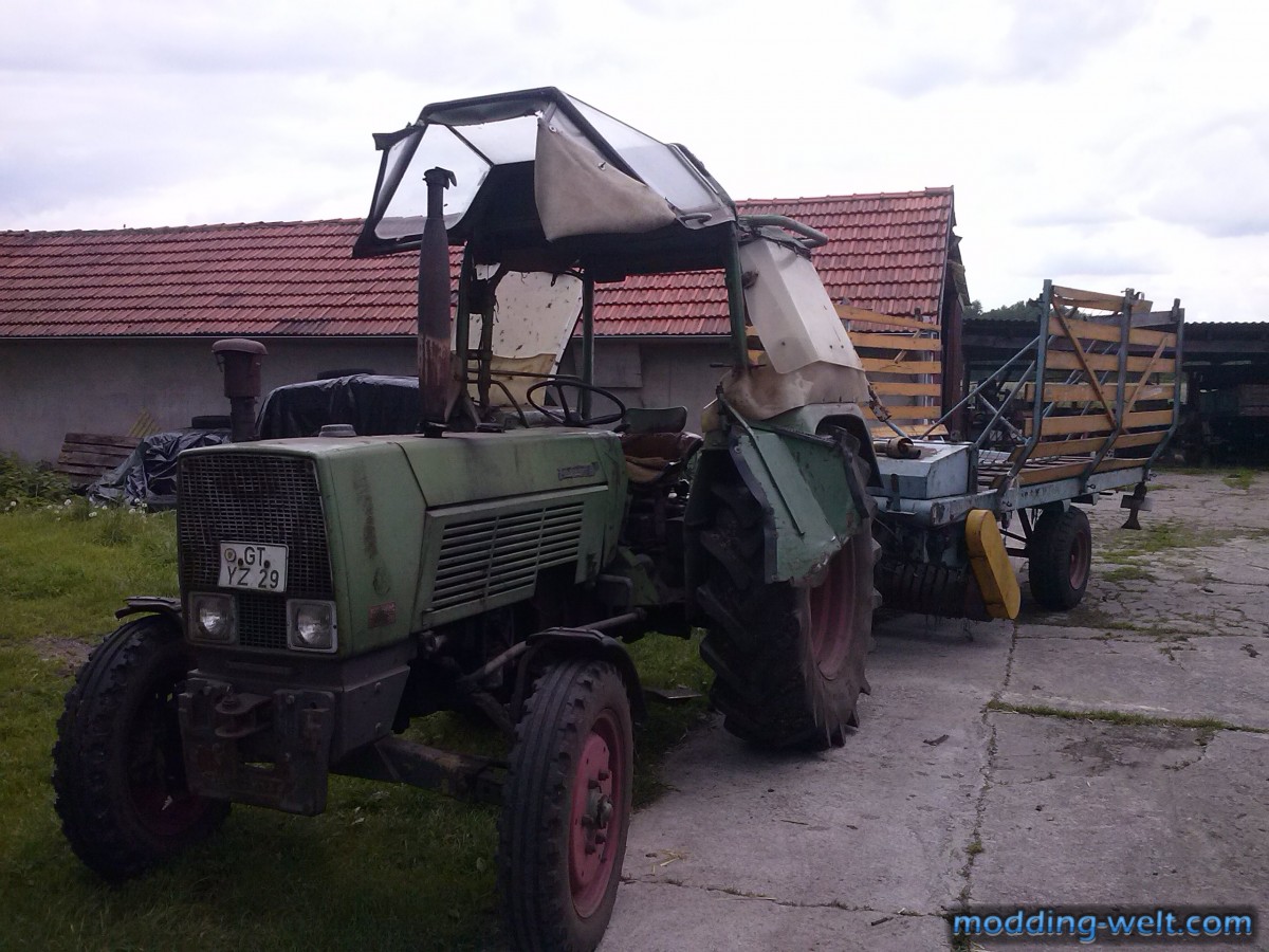 Hier unser alter Fendt Farmer 3S mit Fristein Ladewagen, welchen momentan ein Freund von meinem Vater besitzt und diesen restauriert.