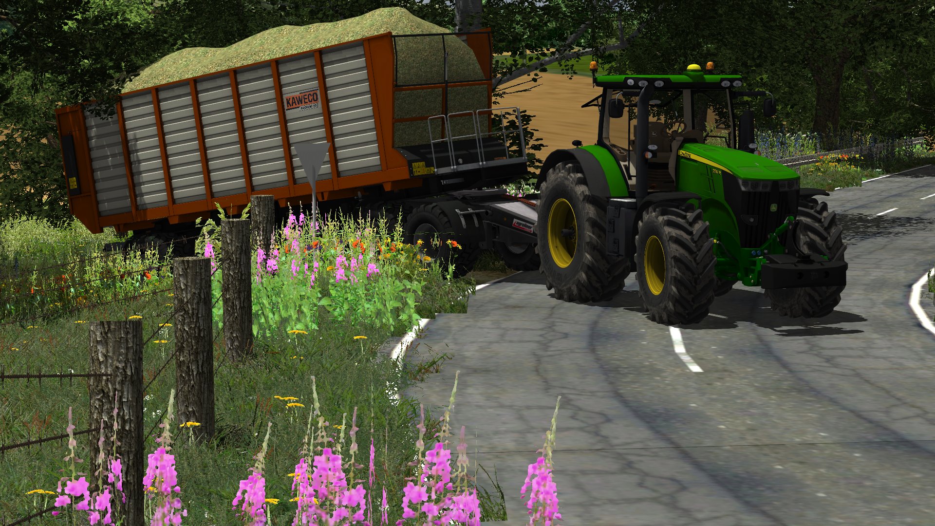 John Deere 7310R + Kaweco Radium 55 Sattelauflieger in Polen