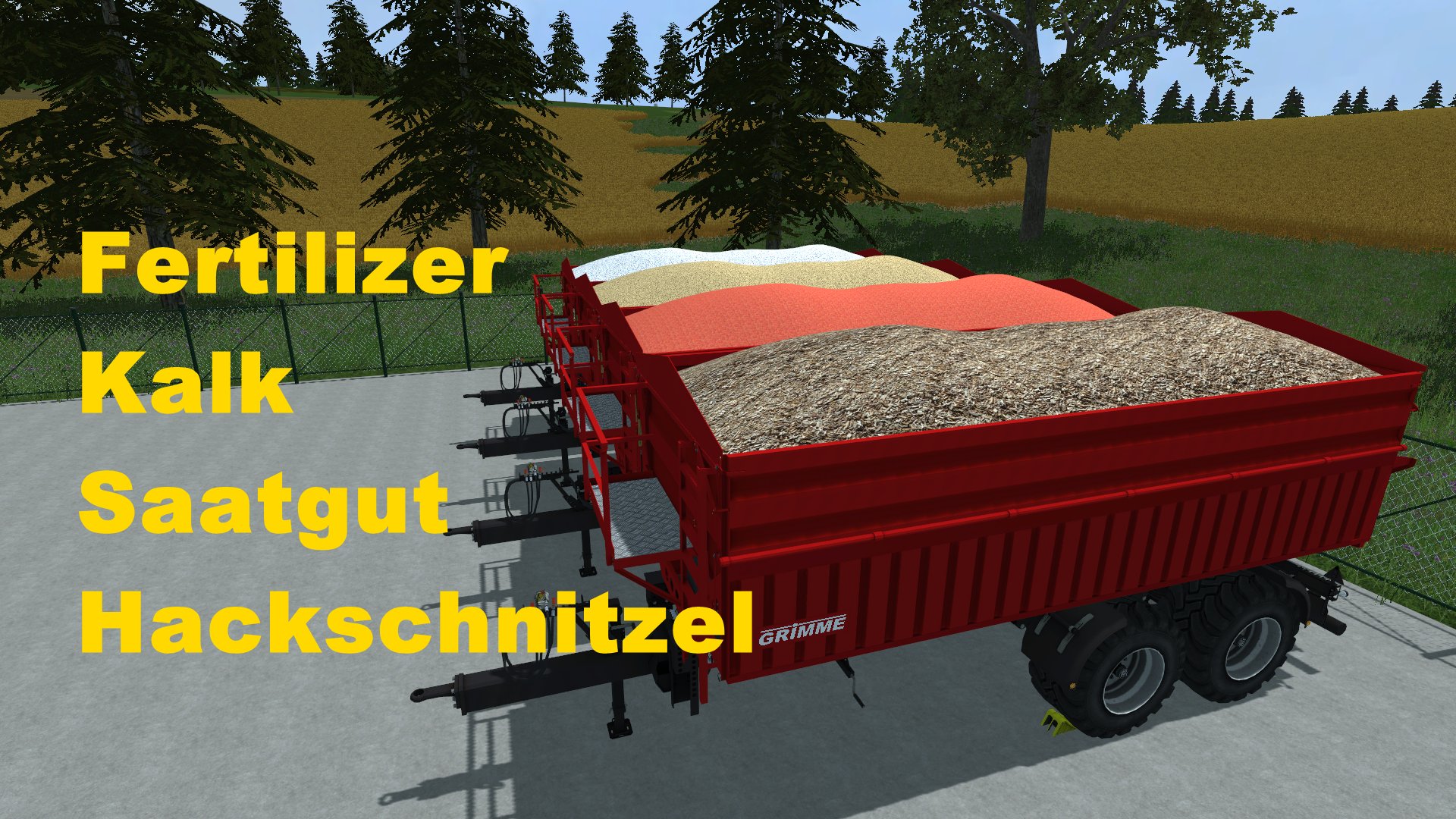 So hier der Grimme Multitrailer 190 mit erweiterung um Fertilizer, Kalk, Saatgut und Hackschnitzel