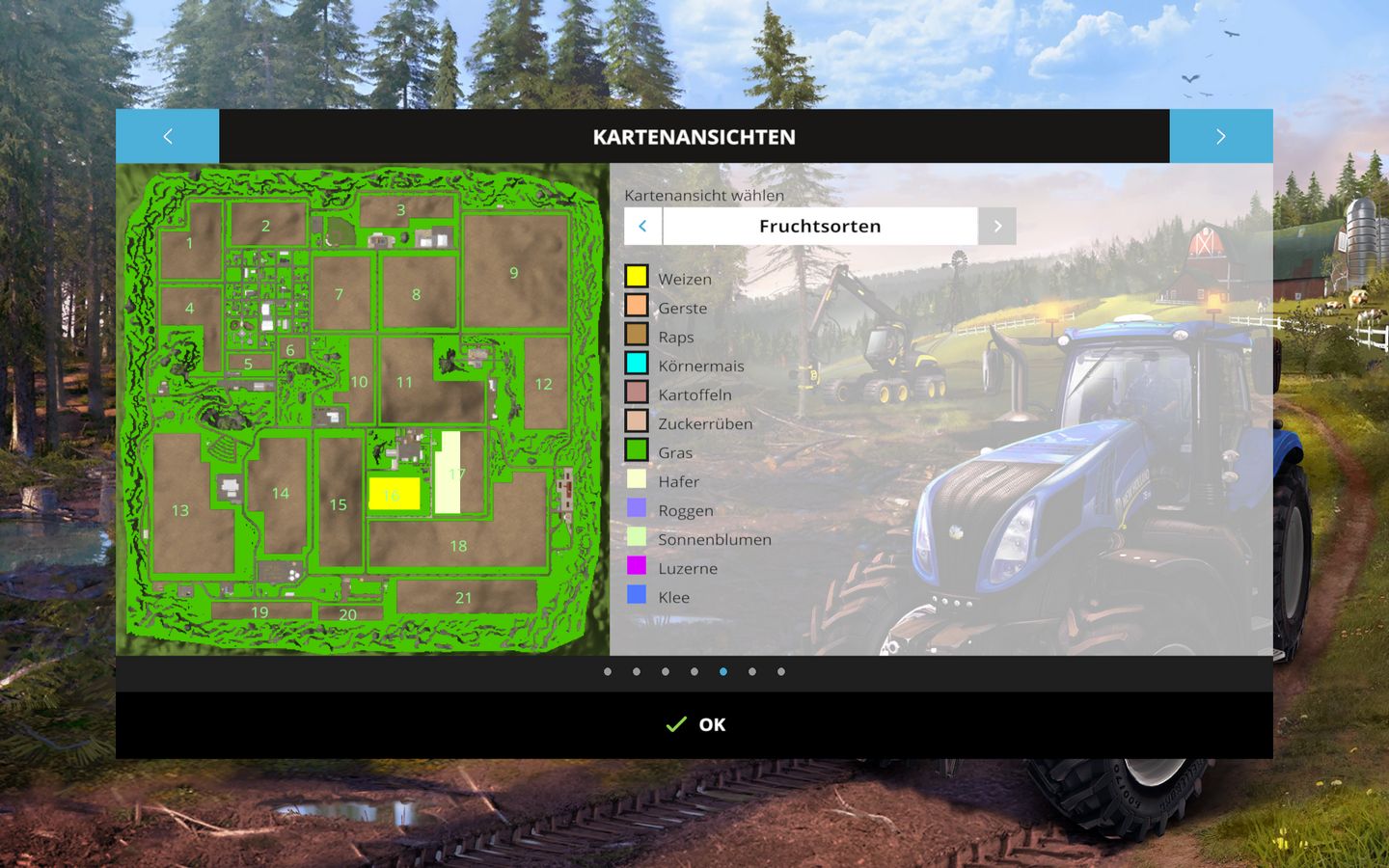 Als weiterer Test habe ich auf einer normalen Westbridge Hills Modmap nach meinem Tutorial Sonnenblumen, Hafer, Roggen, Luzerne und Klee eingebaut.