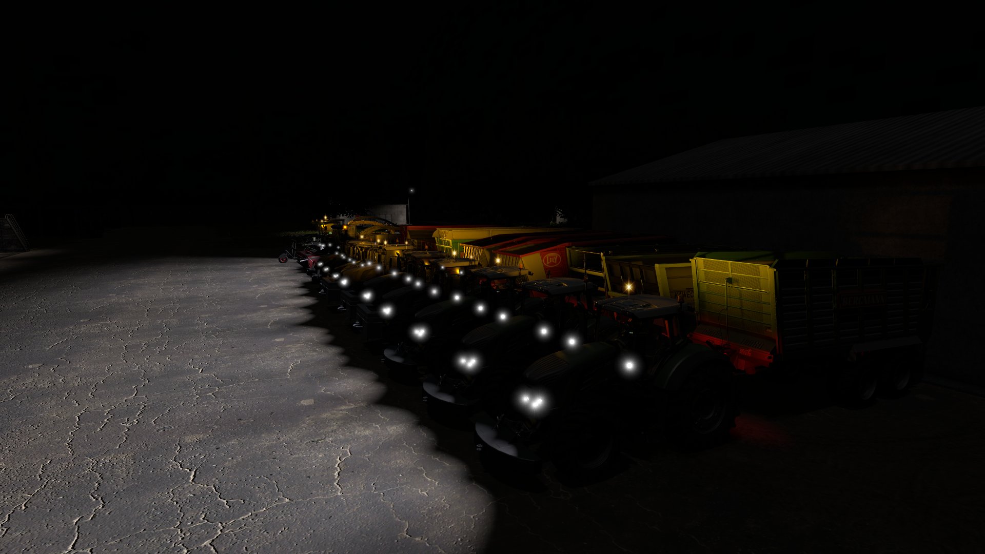 Häckselkolone bei Nacht