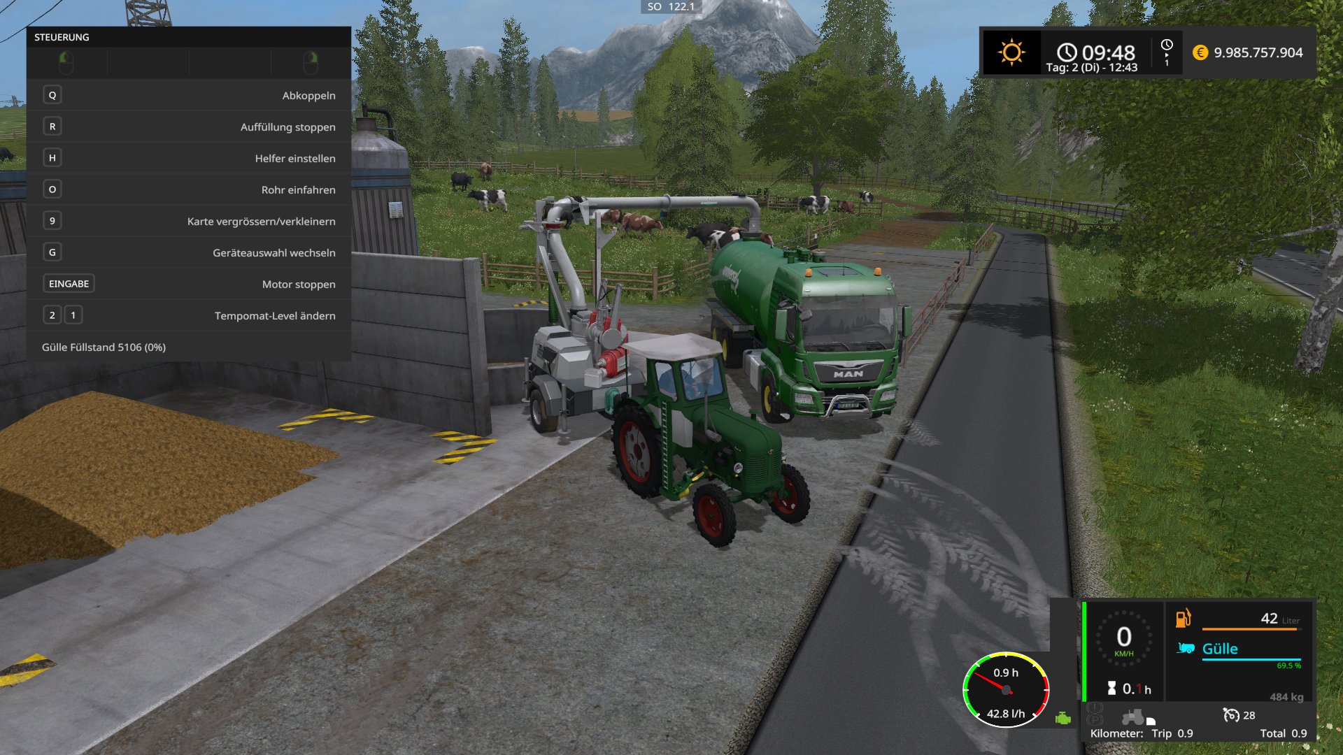mit dem Famulus am Gülle umpumpen