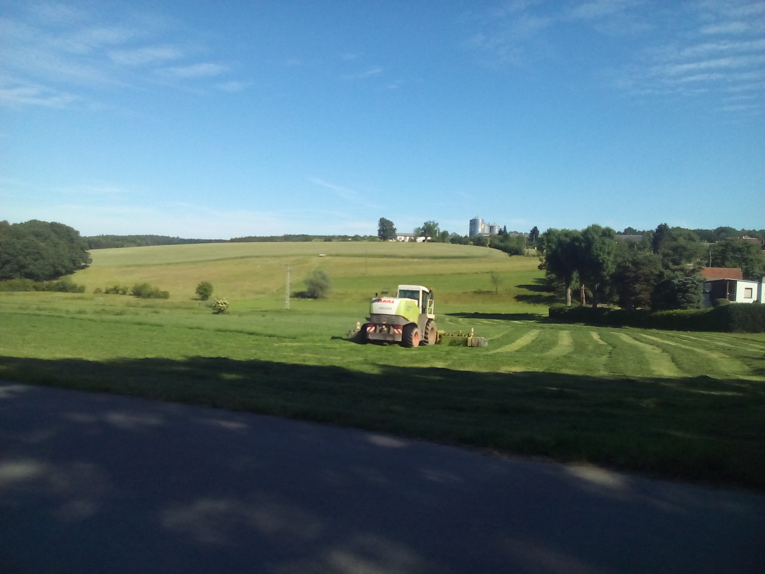 Ein umgebauter Claas Jaguar mit einem Claas Disco Mähwerk.