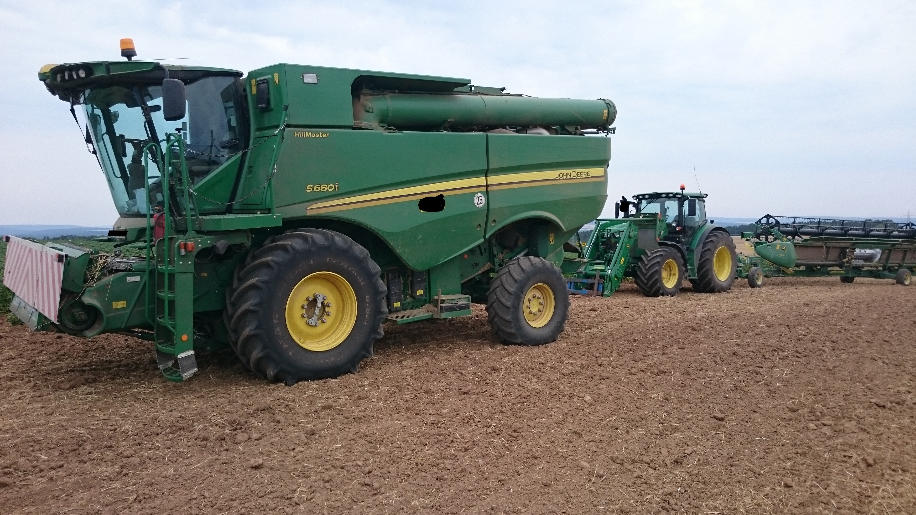 Da es gestern Abend bzw. schon eher heute morgen mal wieder verdammt spät wurde(ca. gegen 00.30 Uhr waren wir fertig) und wir die Felder abgeerntet haben, die am weitesten von unserem Hof entfernt sind (ca. 25 Kilometer), waren die Maschinen über Nacht draußen geblieben (Machen wir eigentlich schon seit Jahren nicht mehr, aber alle waren gestern nur noch müde und kaputt!). Da das Wetter heute eh nicht mitspielt, verlegen wir sie nun zurück und werden eine ordentliche Reinigung vornehmen!