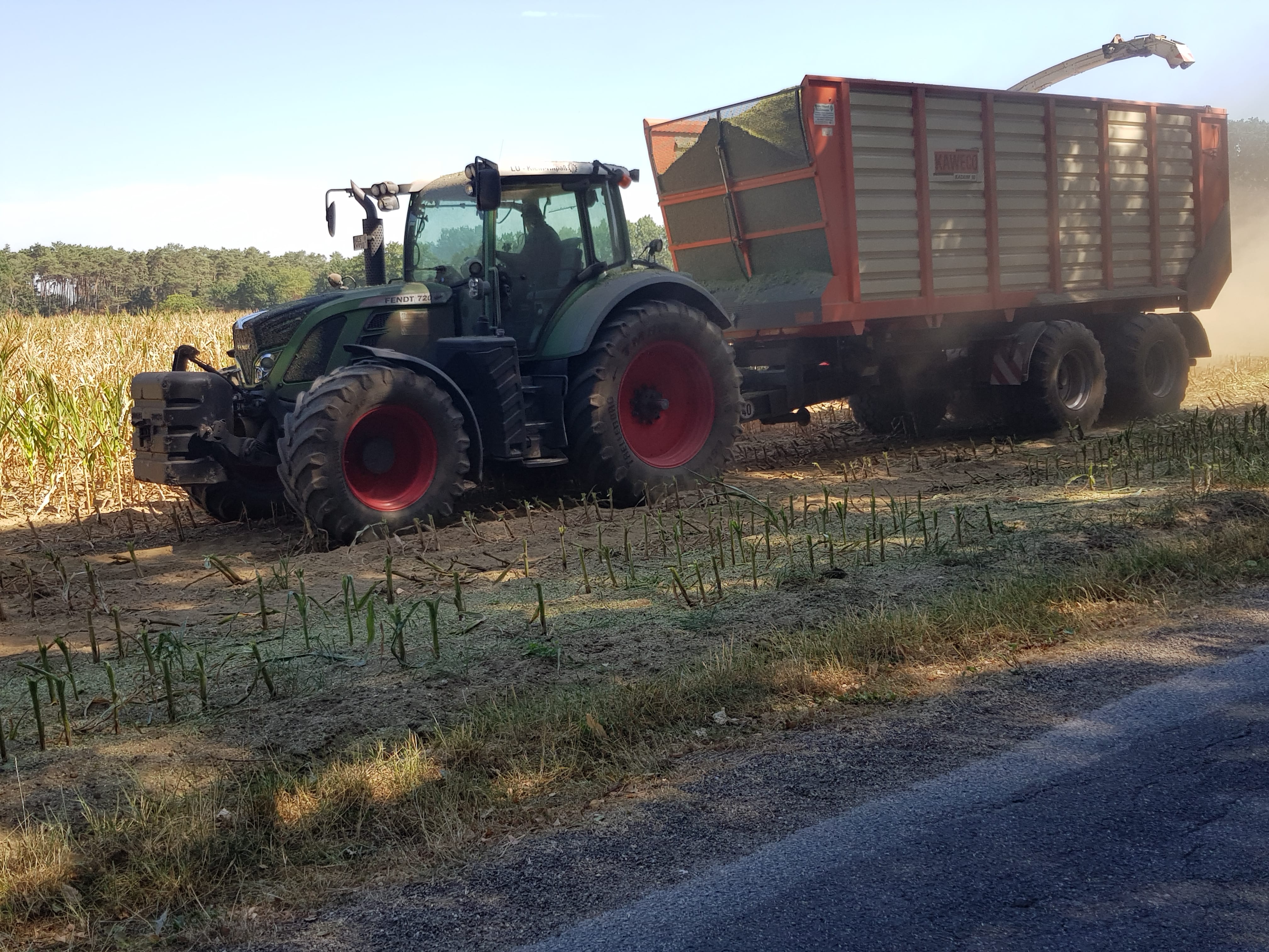 Ja, wenn man an dem Frontgewicht vorne vorbeiguckt sieht man, wie schlecht der Mais aussieht... Leider ist das so dieses Jahr hier, zu wenig Regen...