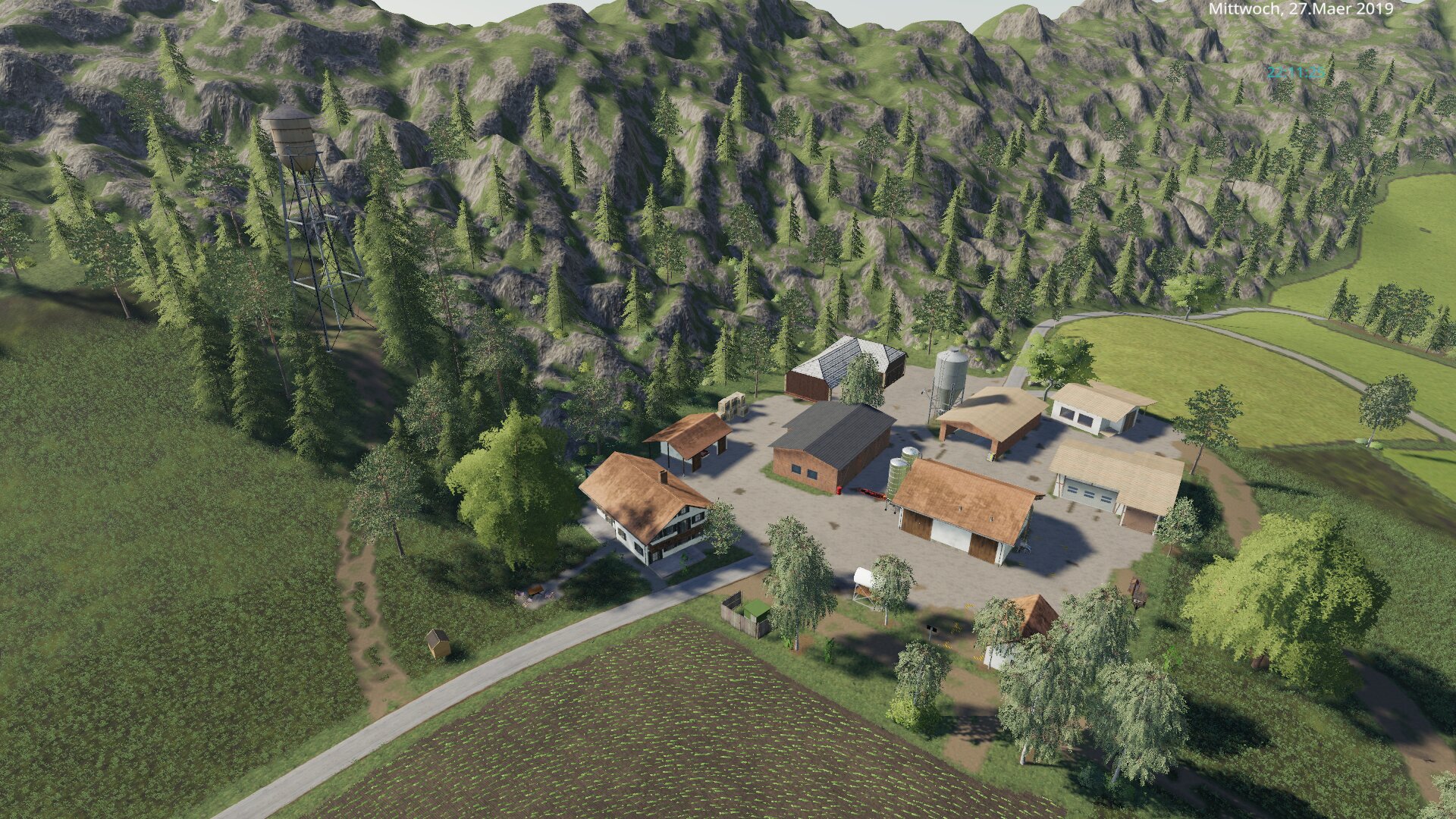 Mein Selfmade-Hof gemacht mit den Tools inerhalb des Spiels auf der Swisstouch.