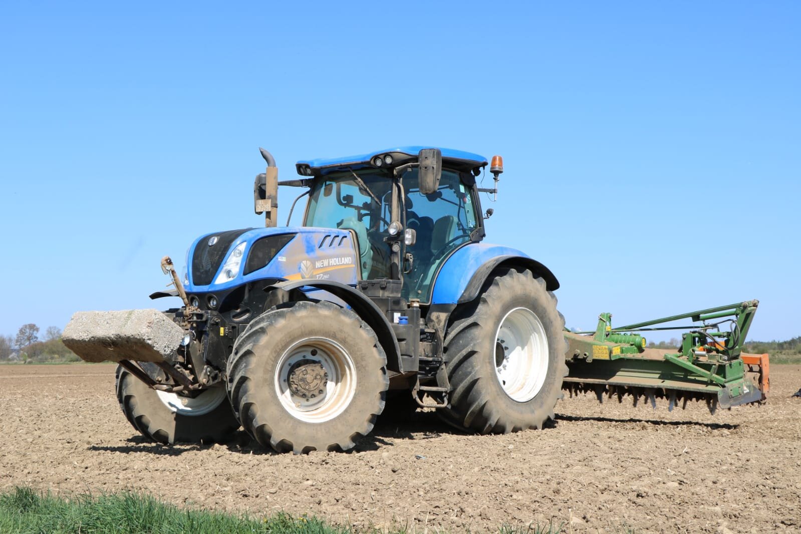 Heute habe ich nach meiner regulären Arbeit mit einem NH T7.260 und einer Amazone Kreiselegge mit 6m den Boden für die Maissaat hergerichtet. ;)