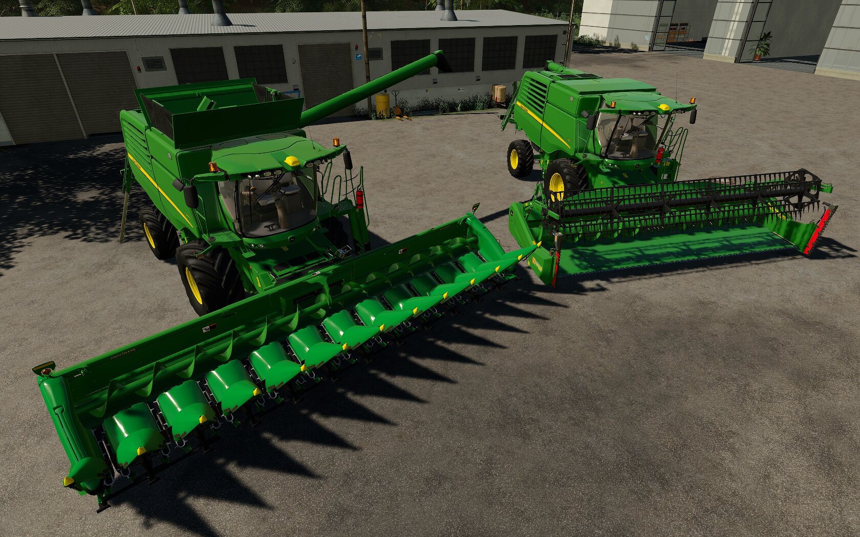 Rechts: John Deere T560 + John Deere 625X (7,6m Schneidwerk+Rapstisch)