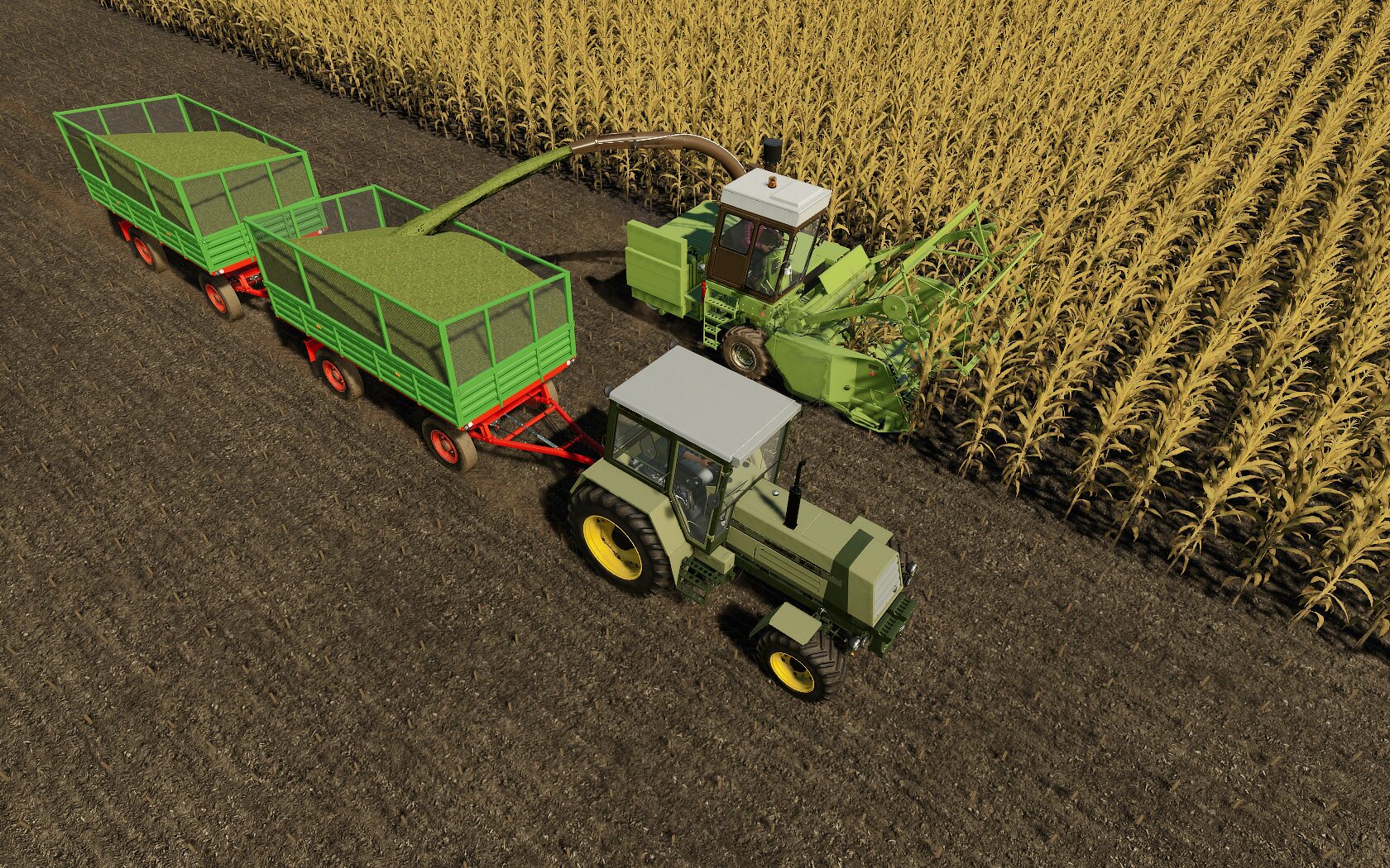 Traktor: Fortschritt ZT 323 + 2x Anhänger: Autosan D55 + Häcksler: Fortschritt E-281 C