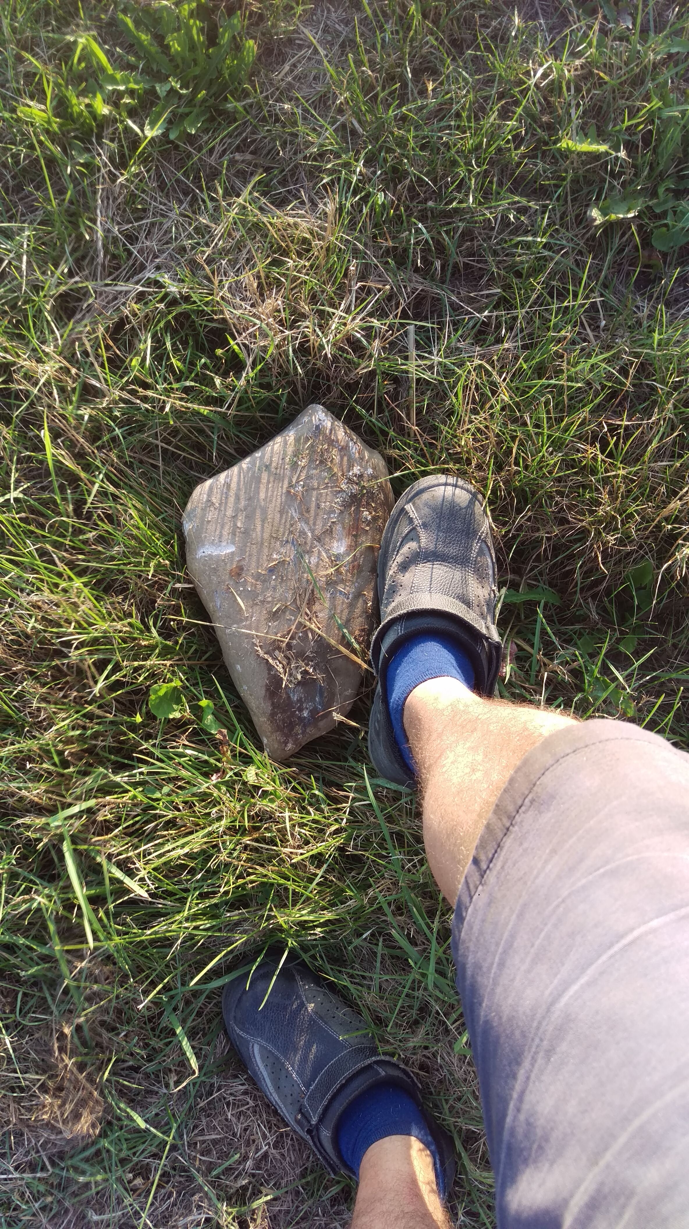 Seit wann wächst das Getreide unter den Steinen. Schon komisch. Er lag genau auf der Grenze zum Feldweg im hohen Gras. Wollte grad hoch lassen da wirft die Haspel mir den Stein da rein.