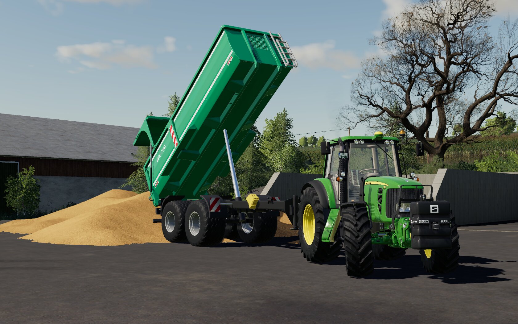Auf dem Bild ist der 6830 und mein Wagner WK 750 zu sehen. Für die Getreideernte wurden die Silageaufsätze abgenommen, so fasst er knappe 27m3.