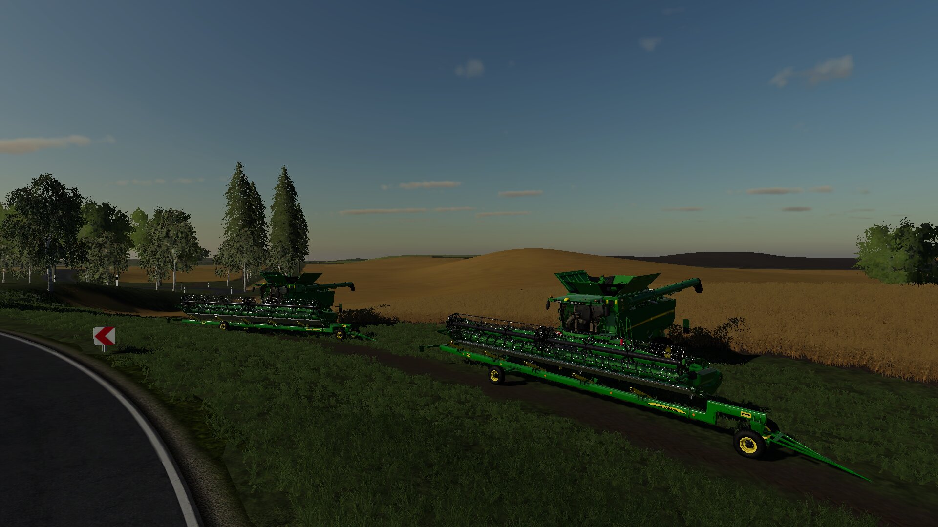 Mähdrescher 2 mit follow me hinter her