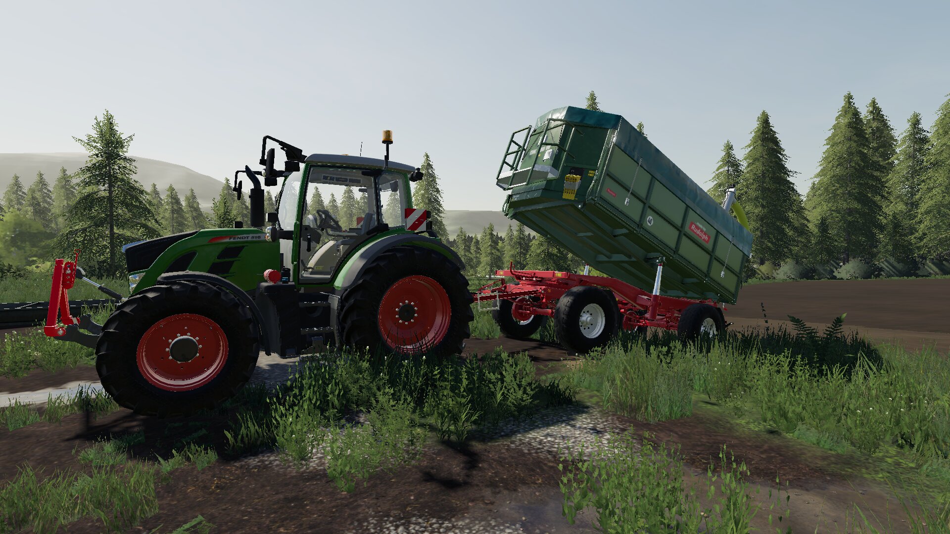 Auf dem nächste Feld wird mit einem Fendt Favorit 818 Turboshift und einer 3 Meter Lemken Saphir 8 Raps gesät. Als Zubringer des Saatgutes dient ein Fendt 516 Vario mit einem Rudolph DK 180 W, dieser ist mit einer Überladeschnecke ausgerüstet.