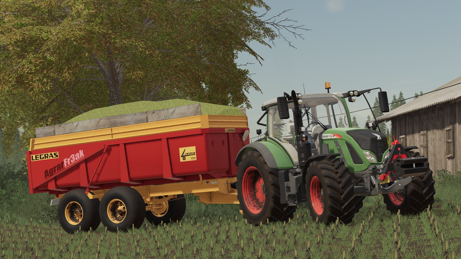 Fendt 714 Vario mit einem Legras Bj140 beim Mais abfahren. ?