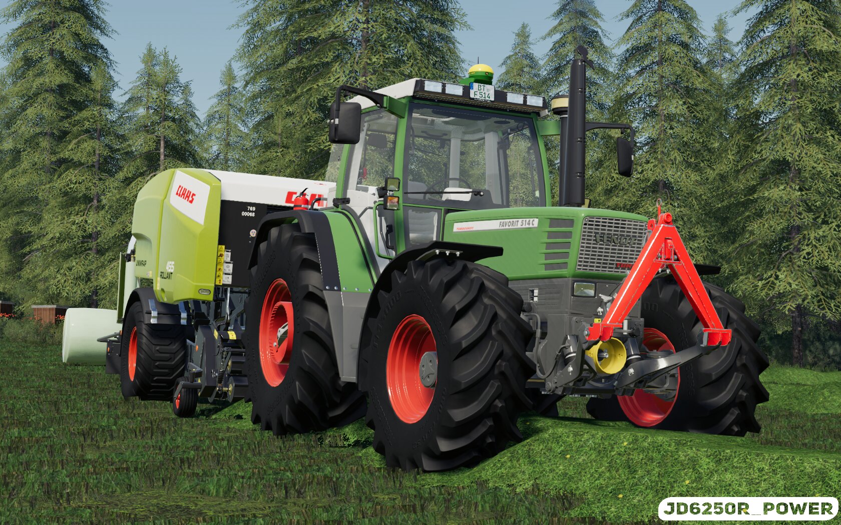 Die Heuwiesen wurden zu Siloballen gepresst, zum Einsatz kam der 514c mit der Claas Rollant 455.